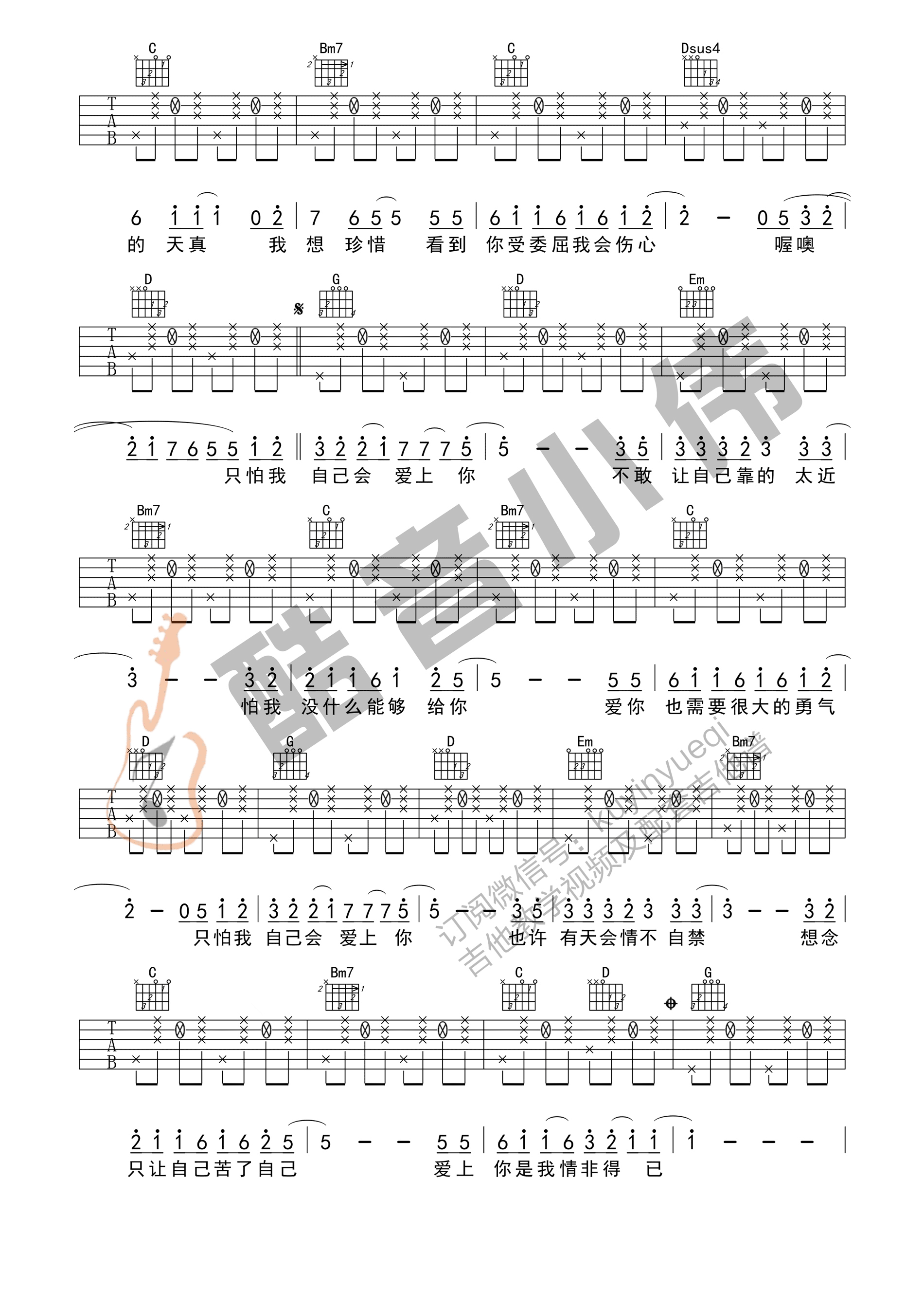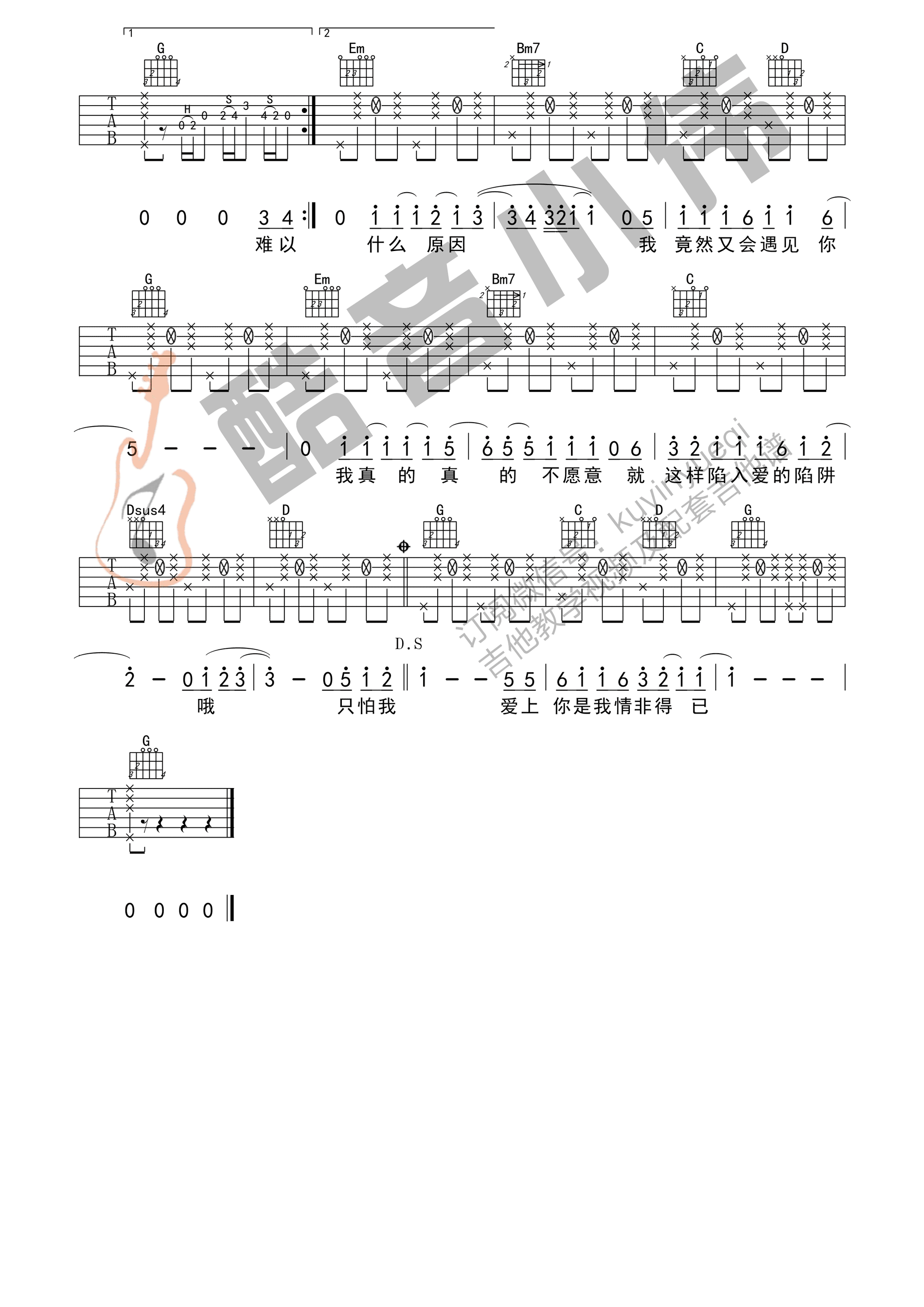《庾澄庆《情非得已吉他谱》(G调)》内容来自于互联网,不能保证内容的准确性与完整性,仅供学习交流欣赏,请勿用于其它用途,内容版权归原作者及来源网站所有,如有侵犯到您的权益请来信告知,我们将及时删除。