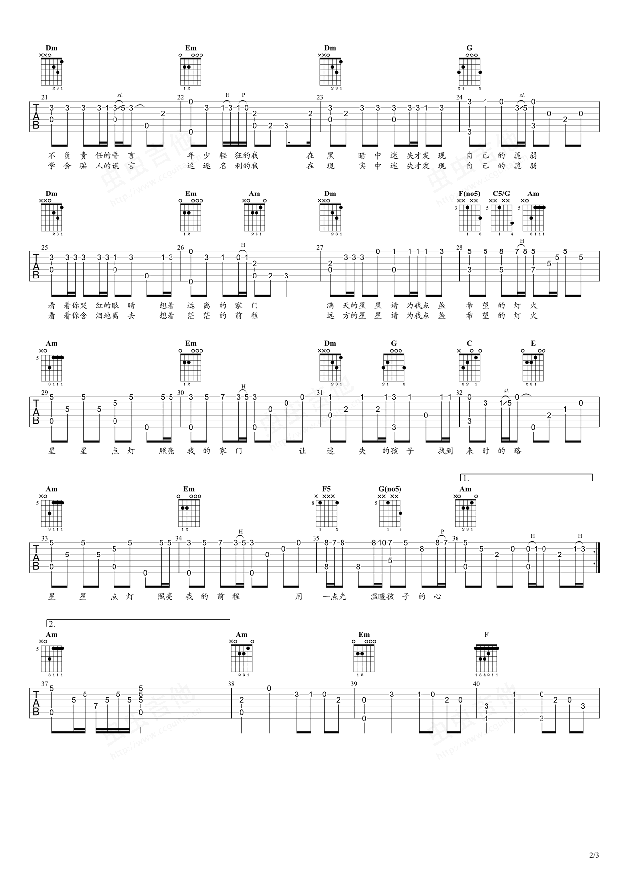 《郑智化《星星点灯指弹吉他谱》》内容来自于互联网,不能保证内容的准确性与完整性,仅供学习交流欣赏,请勿用于其它用途,内容版权归原作者及来源网站所有,如有侵犯到您的权益请来信告知,我们将及时删除。