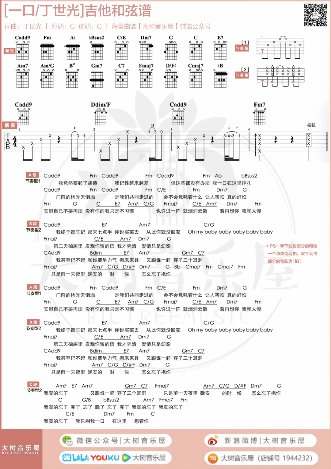 《丁世光《一口吉他谱》(C调)》内容来自于互联网,不能保证内容的准确性与完整性,仅供学习交流欣赏,请勿用于其它用途,内容版权归原作者及来源网站所有,如有侵犯到您的权益请来信告知,我们将及时删除。