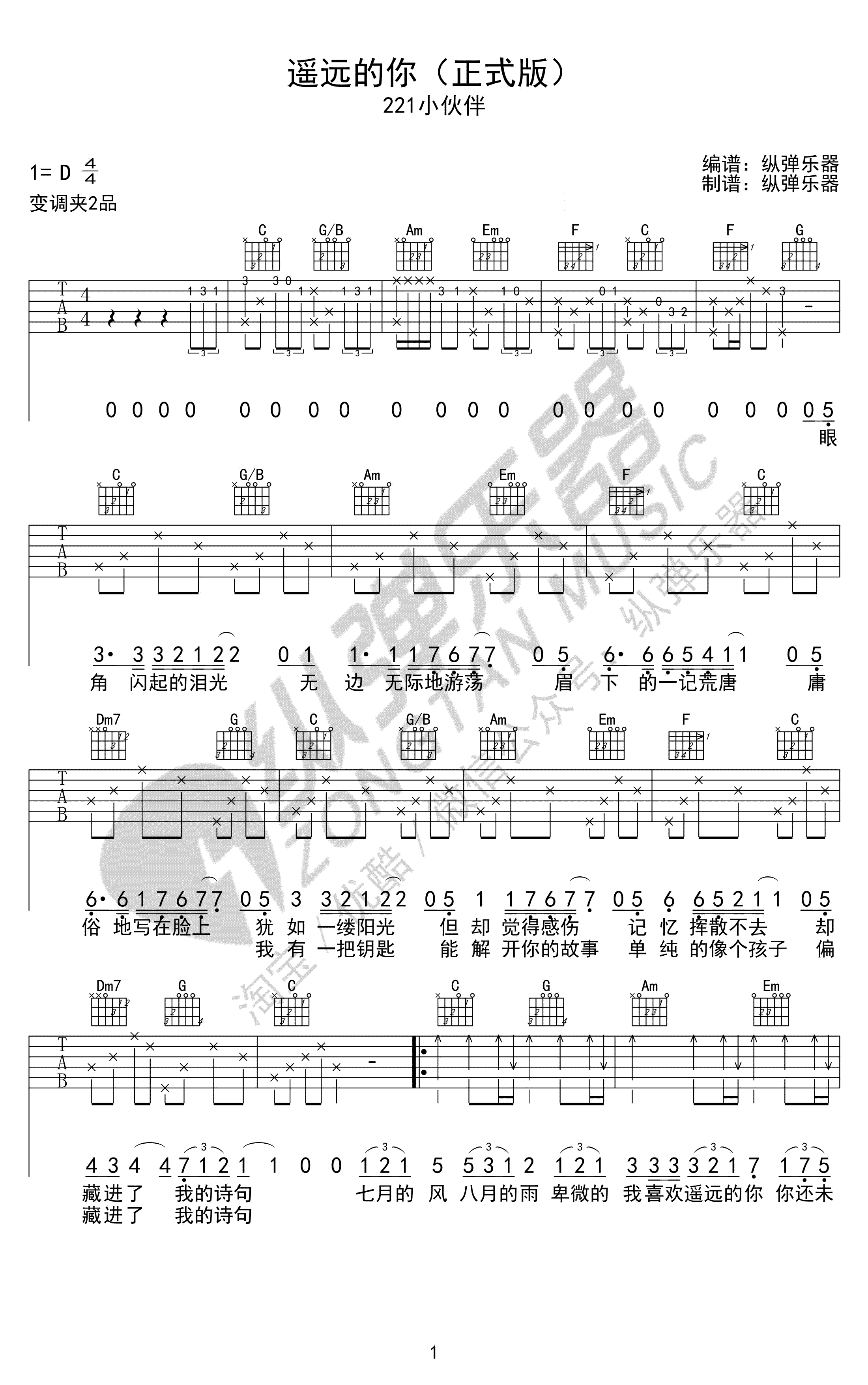 《221小伙伴《遥远的你吉他谱》(C调)》内容来自于互联网,不能保证内容的准确性与完整性,仅供学习交流欣赏,请勿用于其它用途,内容版权归原作者及来源网站所有,如有侵犯到您的权益请来信告知,我们将及时删除。