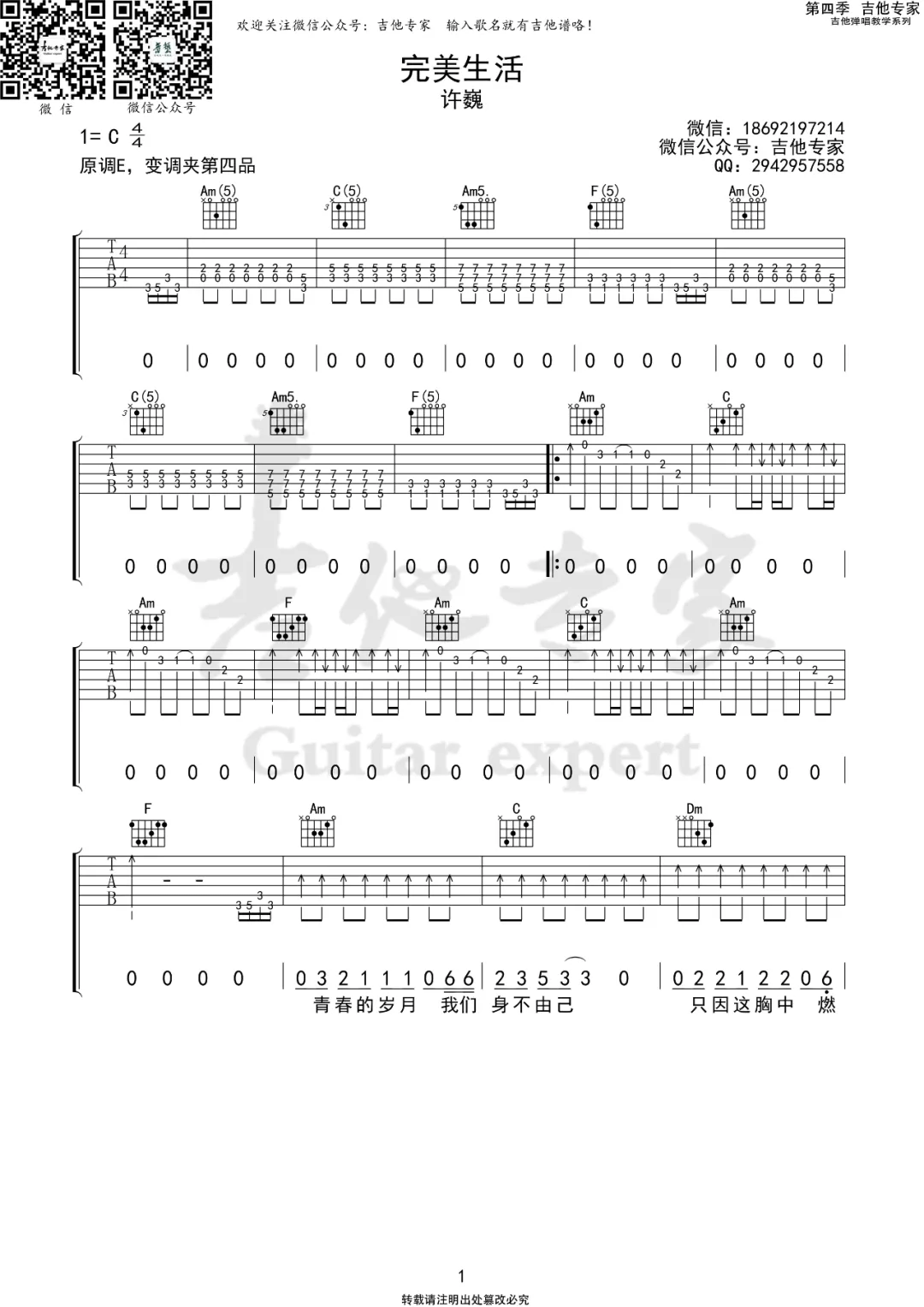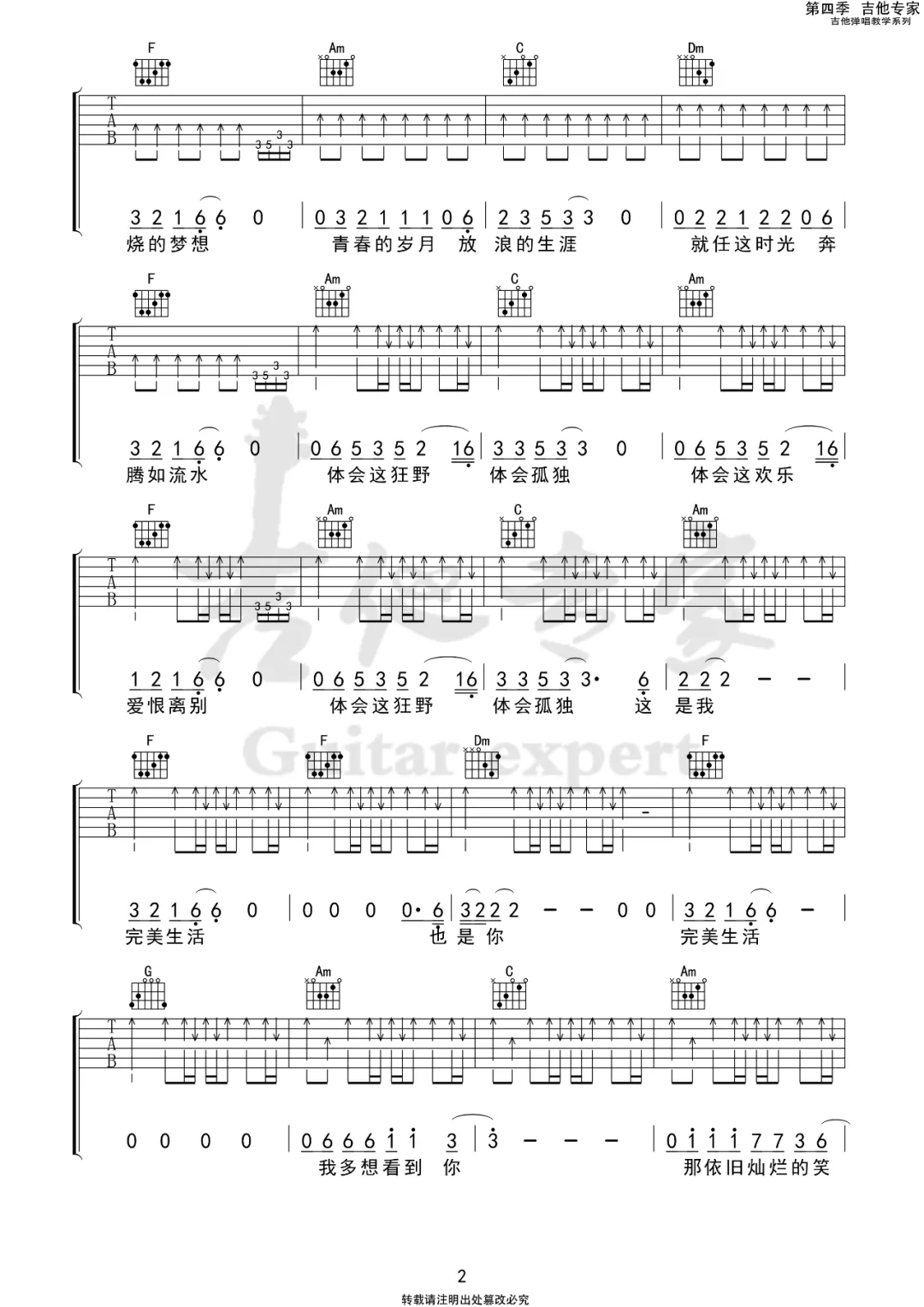 《许巍《完美生活吉他谱》(C调)》内容来自于互联网,不能保证内容的准确性与完整性,仅供学习交流欣赏,请勿用于其它用途,内容版权归原作者及来源网站所有,如有侵犯到您的权益请来信告知,我们将及时删除。