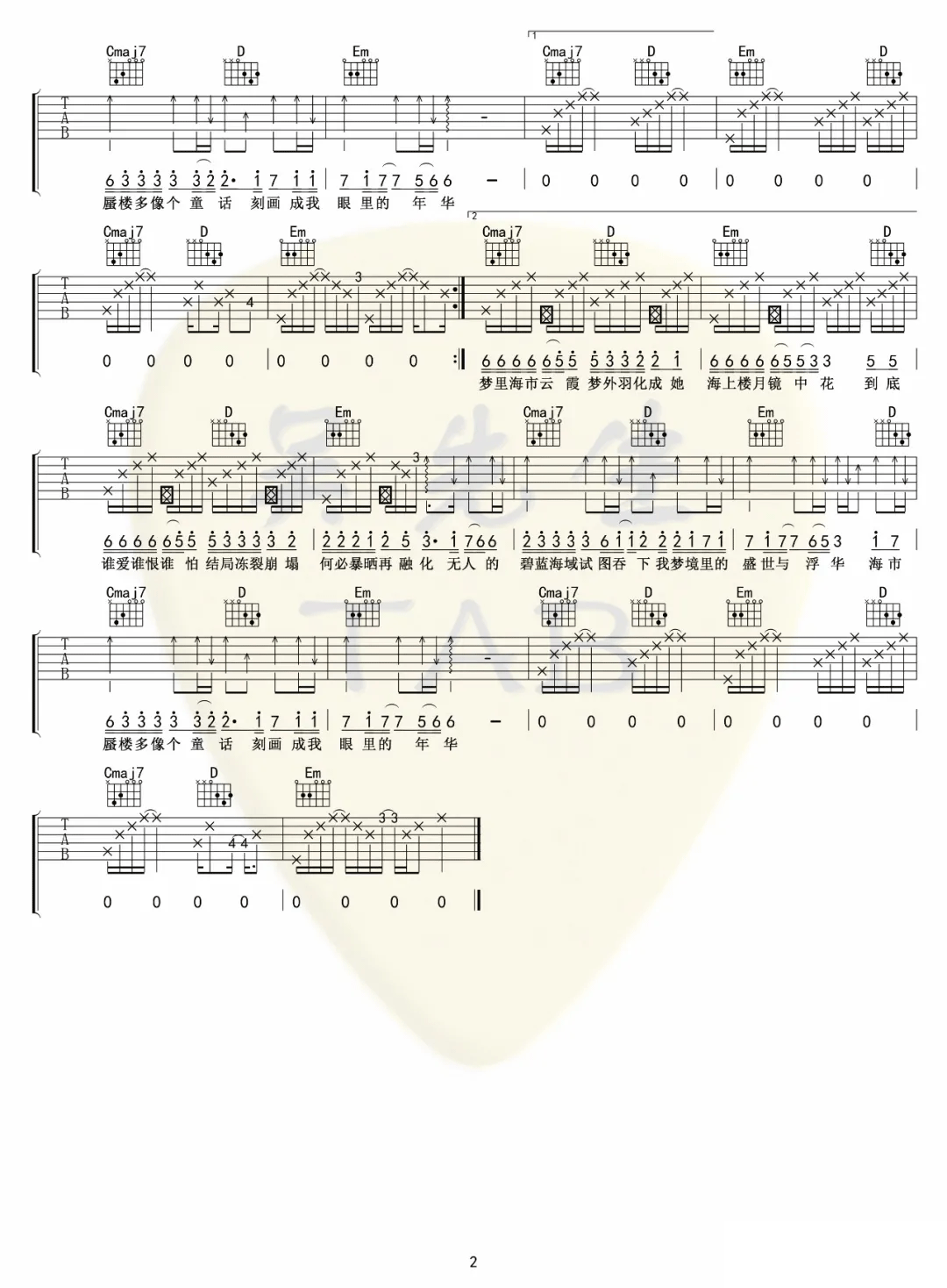 《三叔《海市蜃楼吉他谱》(G调)》内容来自于互联网,不能保证内容的准确性与完整性,仅供学习交流欣赏,请勿用于其它用途,内容版权归原作者及来源网站所有,如有侵犯到您的权益请来信告知,我们将及时删除。
