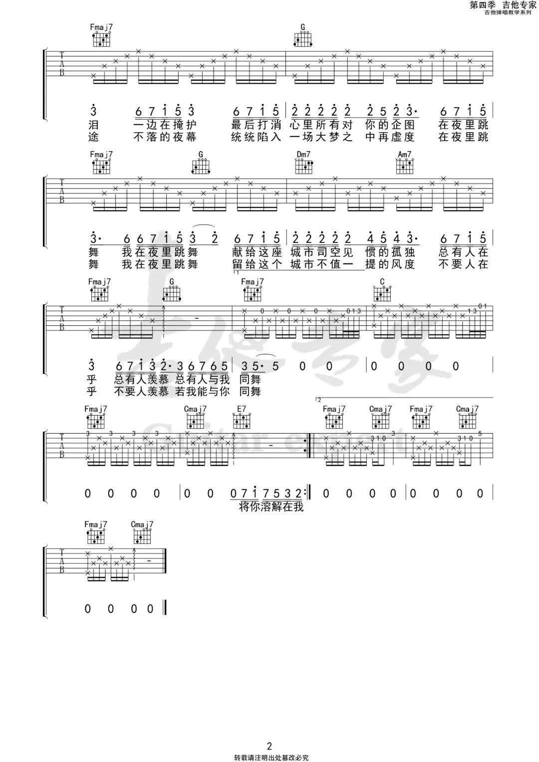 《单依纯《在夜里跳舞吉他谱》(C调)》内容来自于互联网,不能保证内容的准确性与完整性,仅供学习交流欣赏,请勿用于其它用途,内容版权归原作者及来源网站所有,如有侵犯到您的权益请来信告知,我们将及时删除。