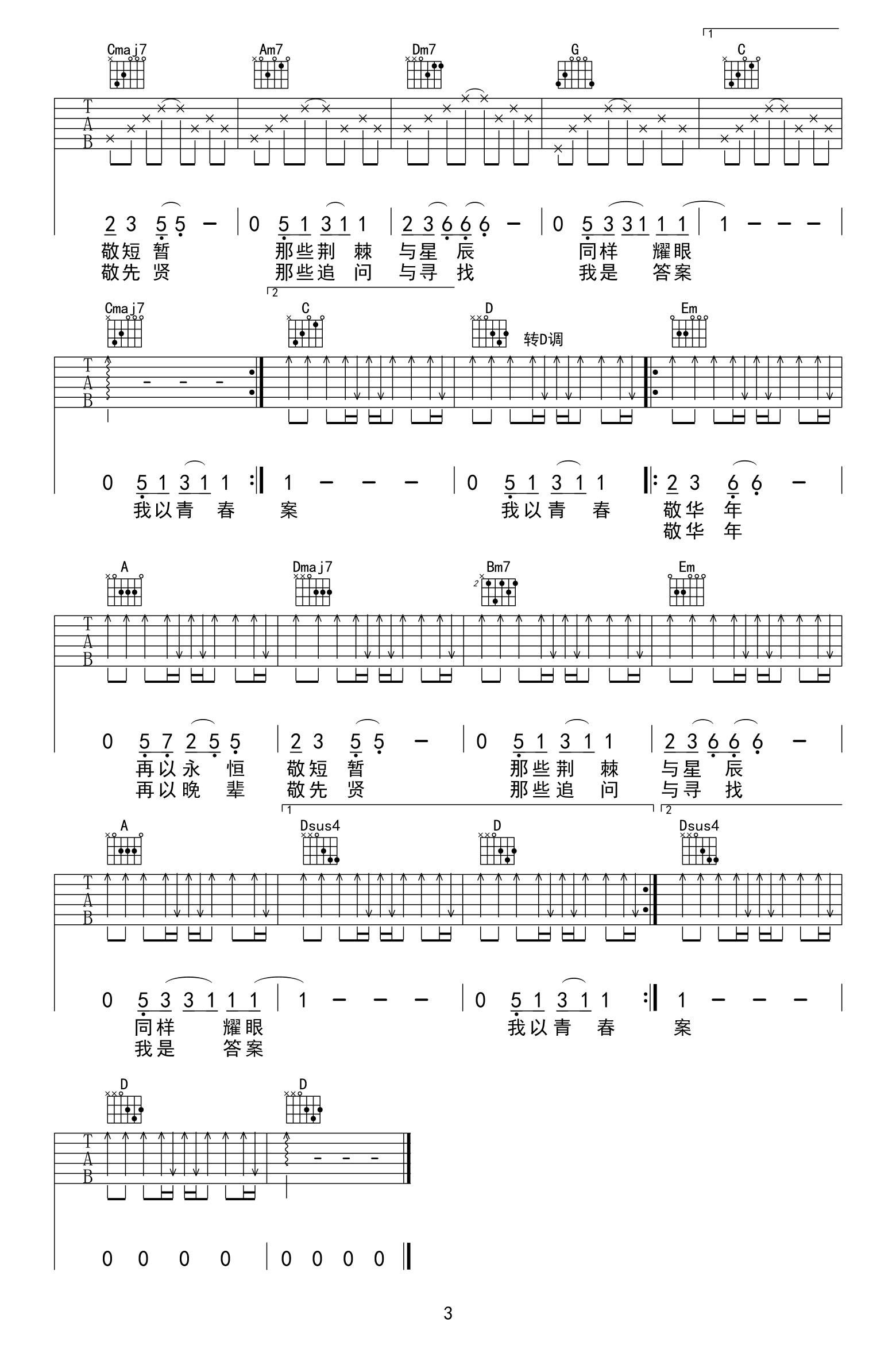 《张杰《我以青春敬华年吉他谱》(C调)》内容来自于互联网,不能保证内容的准确性与完整性,仅供学习交流欣赏,请勿用于其它用途,内容版权归原作者及来源网站所有,如有侵犯到您的权益请来信告知,我们将及时删除。