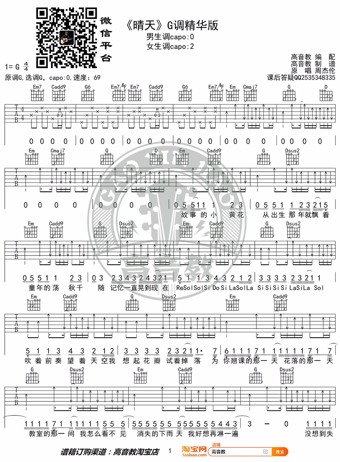 《周杰伦《晴天吉他谱》(G调)》内容来自于互联网,不能保证内容的准确性与完整性,仅供学习交流欣赏,请勿用于其它用途,内容版权归原作者及来源网站所有,如有侵犯到您的权益请来信告知,我们将及时删除。