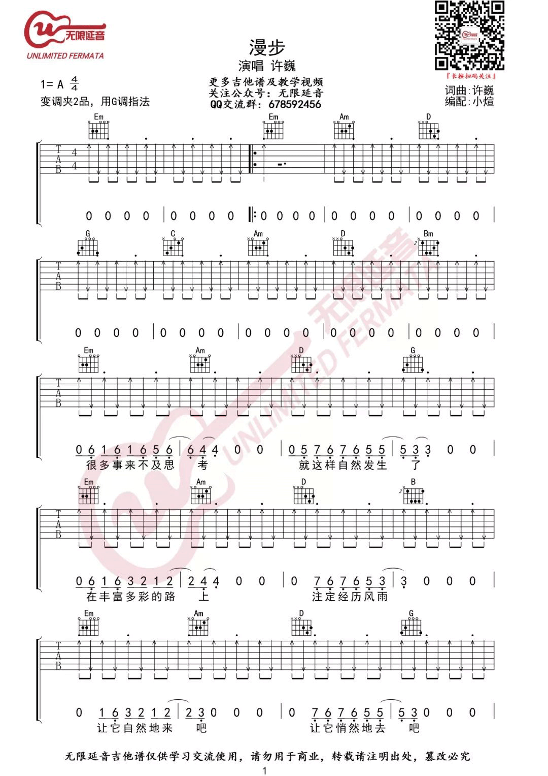 《许巍《漫步吉他谱》(G调)》内容来自于互联网,不能保证内容的准确性与完整性,仅供学习交流欣赏,请勿用于其它用途,内容版权归原作者及来源网站所有,如有侵犯到您的权益请来信告知,我们将及时删除。