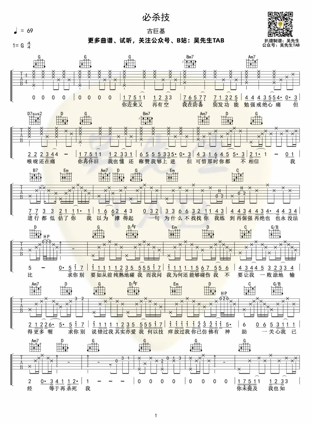 《古巨基《必杀技吉他谱》(G调)》内容来自于互联网,不能保证内容的准确性与完整性,仅供学习交流欣赏,请勿用于其它用途,内容版权归原作者及来源网站所有,如有侵犯到您的权益请来信告知,我们将及时删除。