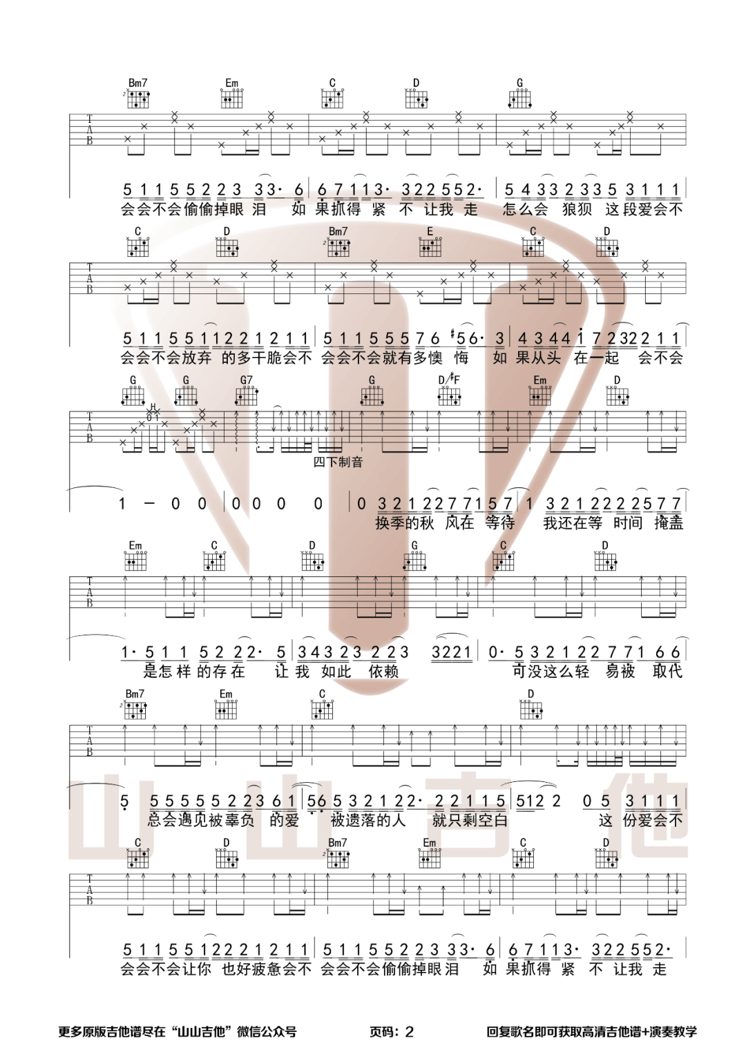 《大壮《会不会吉他谱》(G调)》内容来自于互联网,不能保证内容的准确性与完整性,仅供学习交流欣赏,请勿用于其它用途,内容版权归原作者及来源网站所有,如有侵犯到您的权益请来信告知,我们将及时删除。