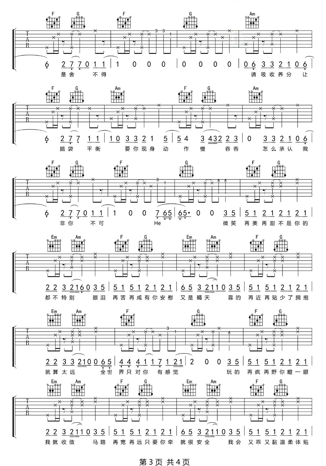 《飞轮海《只对你有感觉吉他谱》(C调)》内容来自于互联网,不能保证内容的准确性与完整性,仅供学习交流欣赏,请勿用于其它用途,内容版权归原作者及来源网站所有,如有侵犯到您的权益请来信告知,我们将及时删除。