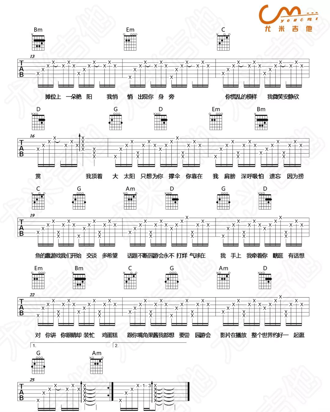 《周杰伦《园游会吉他谱》(G调)》内容来自于互联网,不能保证内容的准确性与完整性,仅供学习交流欣赏,请勿用于其它用途,内容版权归原作者及来源网站所有,如有侵犯到您的权益请来信告知,我们将及时删除。