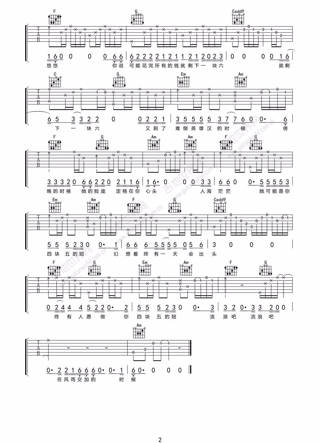 本文标题 《隔壁老樊《四块五吉他谱》(C调)》,网址:https://www.21qupu.com/guitar/23814.html