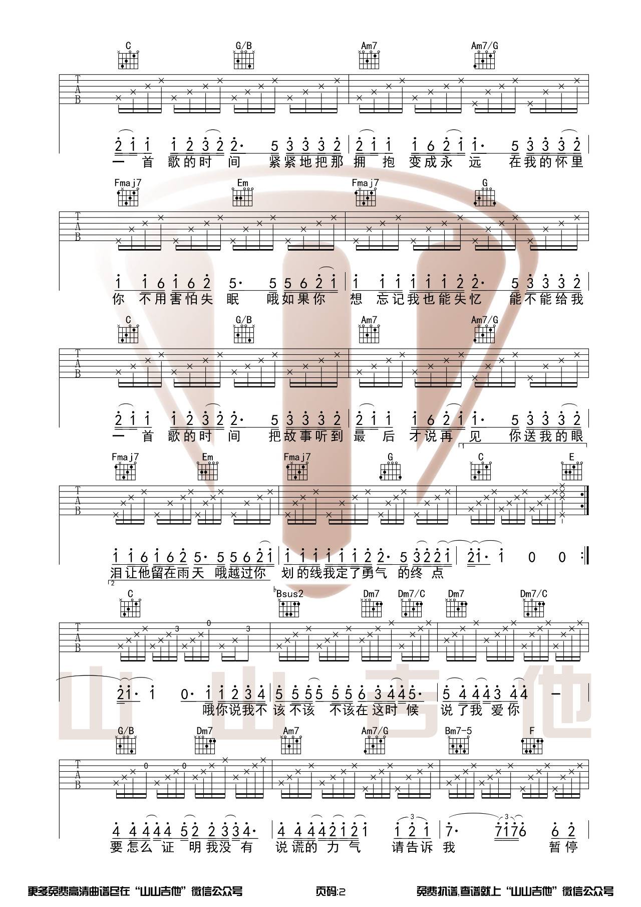 《周杰伦《给我一首歌的时间吉他谱》(C调)》内容来自于互联网,不能保证内容的准确性与完整性,仅供学习交流欣赏,请勿用于其它用途,内容版权归原作者及来源网站所有,如有侵犯到您的权益请来信告知,我们将及时删除。