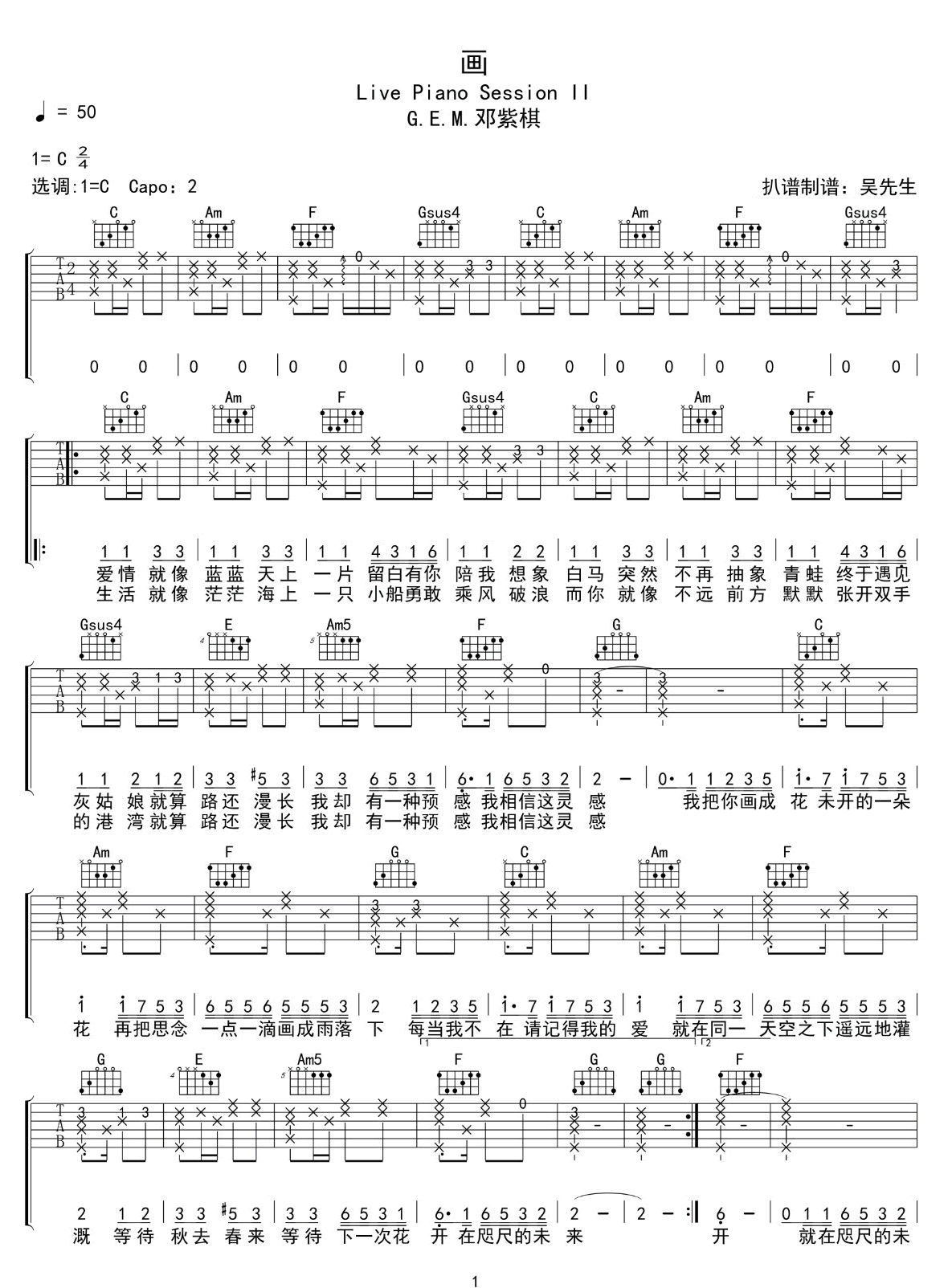 《邓紫棋《画吉他谱》(C调)》内容来自于互联网,不能保证内容的准确性与完整性,仅供学习交流欣赏,请勿用于其它用途,内容版权归原作者及来源网站所有,如有侵犯到您的权益请来信告知,我们将及时删除。