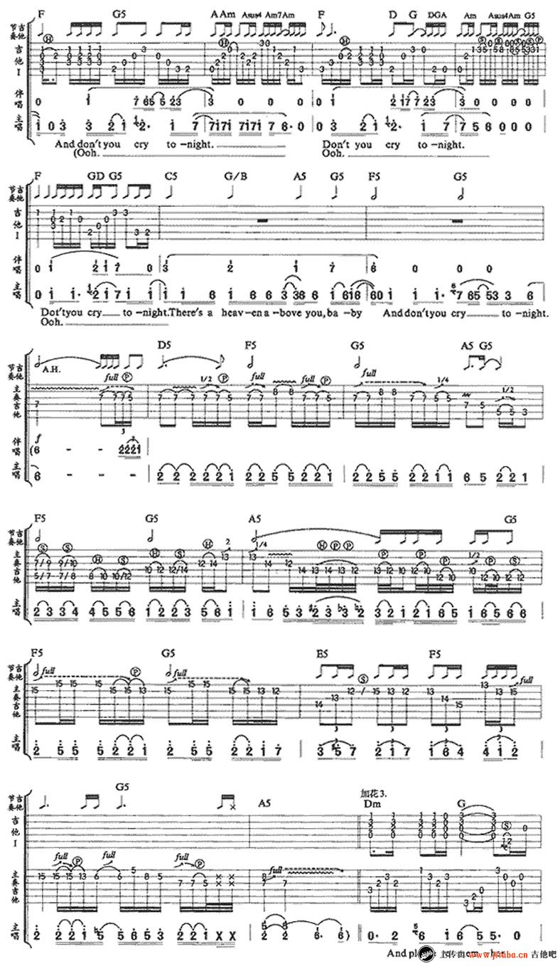 《Guns N Roses《Don't Cry吉他谱》》内容来自于互联网,不能保证内容的准确性与完整性,仅供学习交流欣赏,请勿用于其它用途,内容版权归原作者及来源网站所有,如有侵犯到您的权益请来信告知,我们将及时删除。
