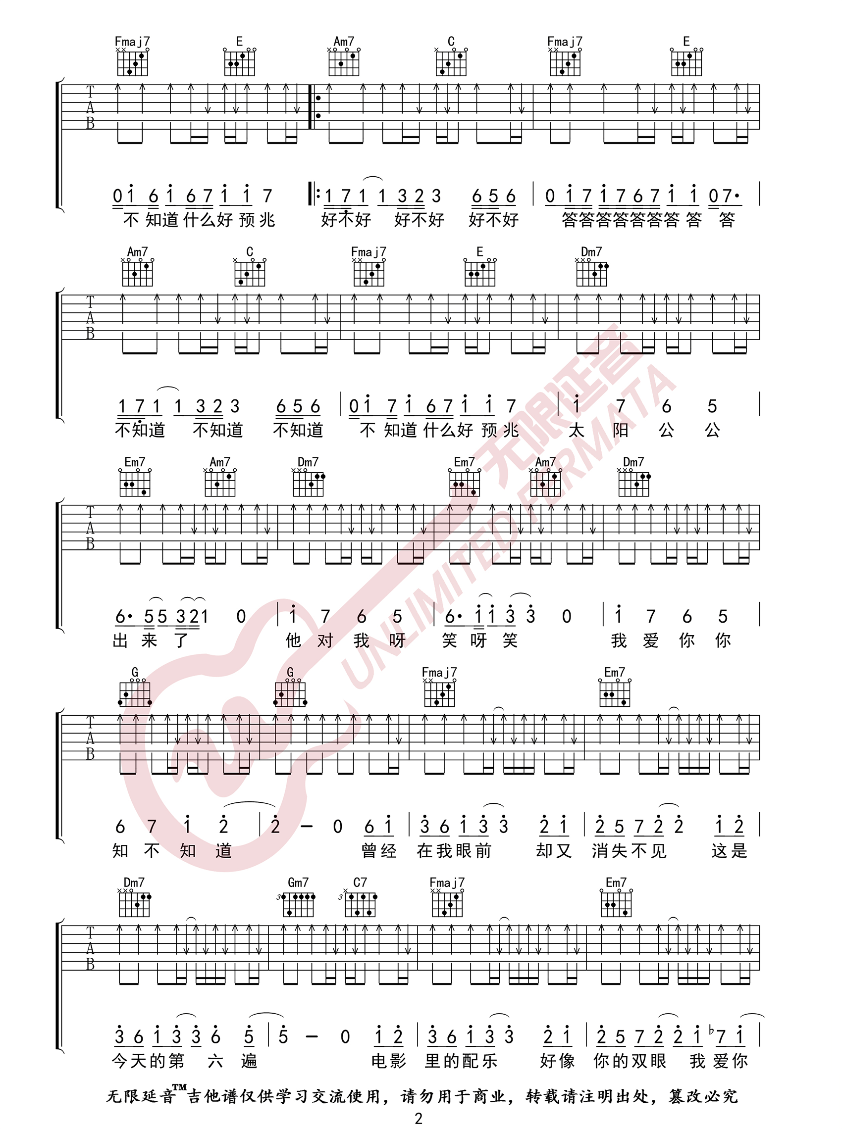 《卢广仲《我爱你吉他谱》(C调)》内容来自于互联网,不能保证内容的准确性与完整性,仅供学习交流欣赏,请勿用于其它用途,内容版权归原作者及来源网站所有,如有侵犯到您的权益请来信告知,我们将及时删除。