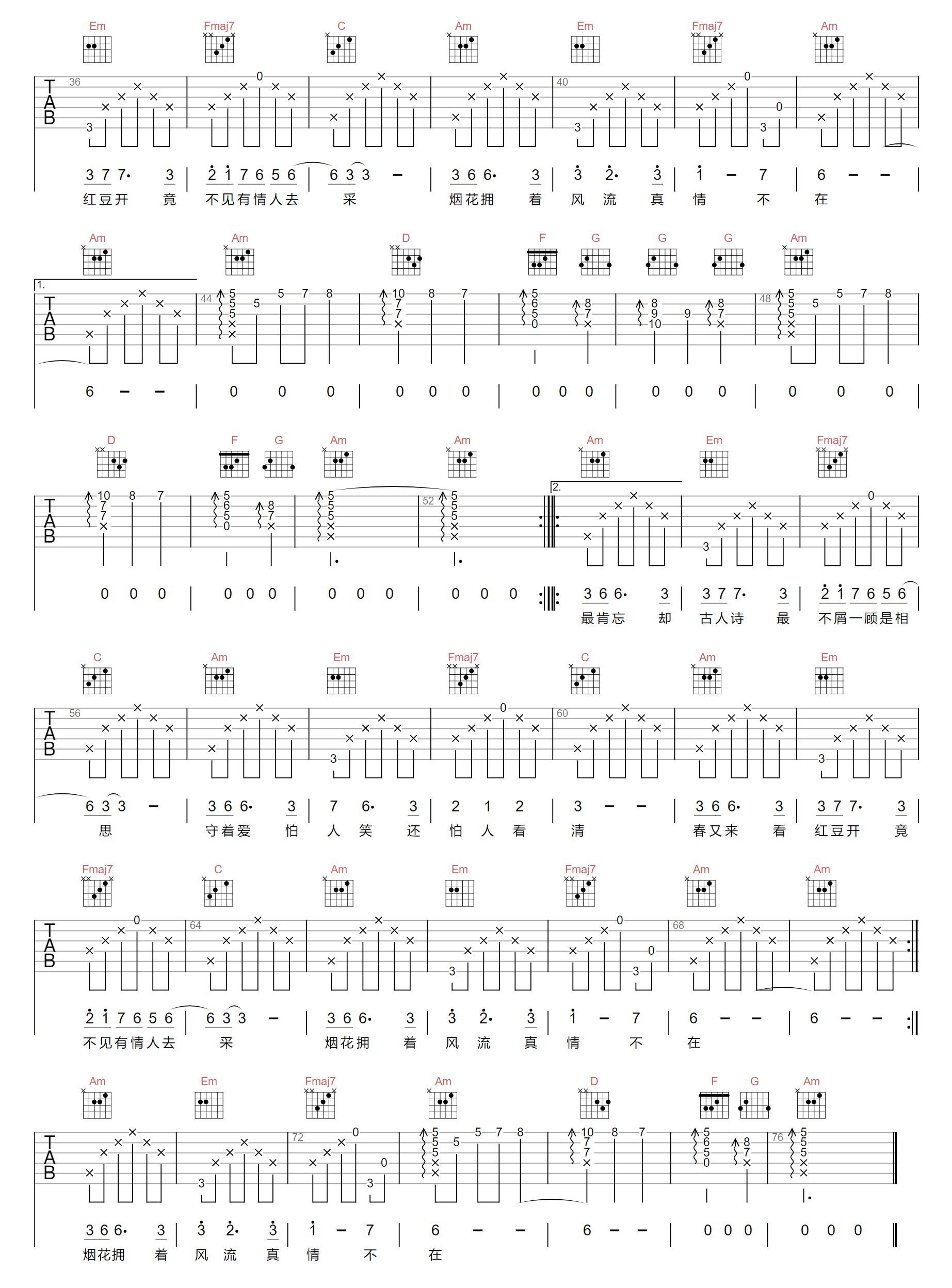 《毛阿敏《相思吉他谱》(C调)》内容来自于互联网,不能保证内容的准确性与完整性,仅供学习交流欣赏,请勿用于其它用途,内容版权归原作者及来源网站所有,如有侵犯到您的权益请来信告知,我们将及时删除。