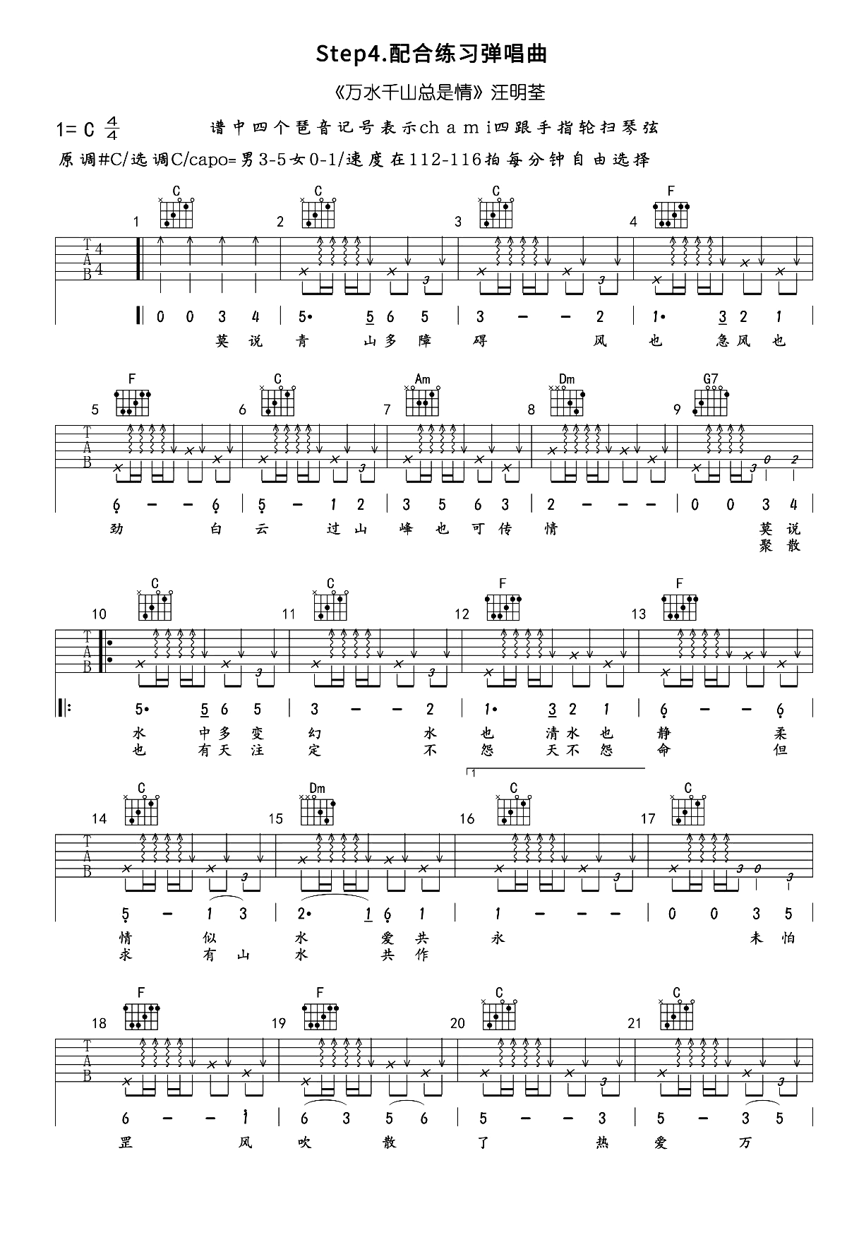 《汪明荃《万水千山总是情吉他谱》(C调)》内容来自于互联网,不能保证内容的准确性与完整性,仅供学习交流欣赏,请勿用于其它用途,内容版权归原作者及来源网站所有,如有侵犯到您的权益请来信告知,我们将及时删除。