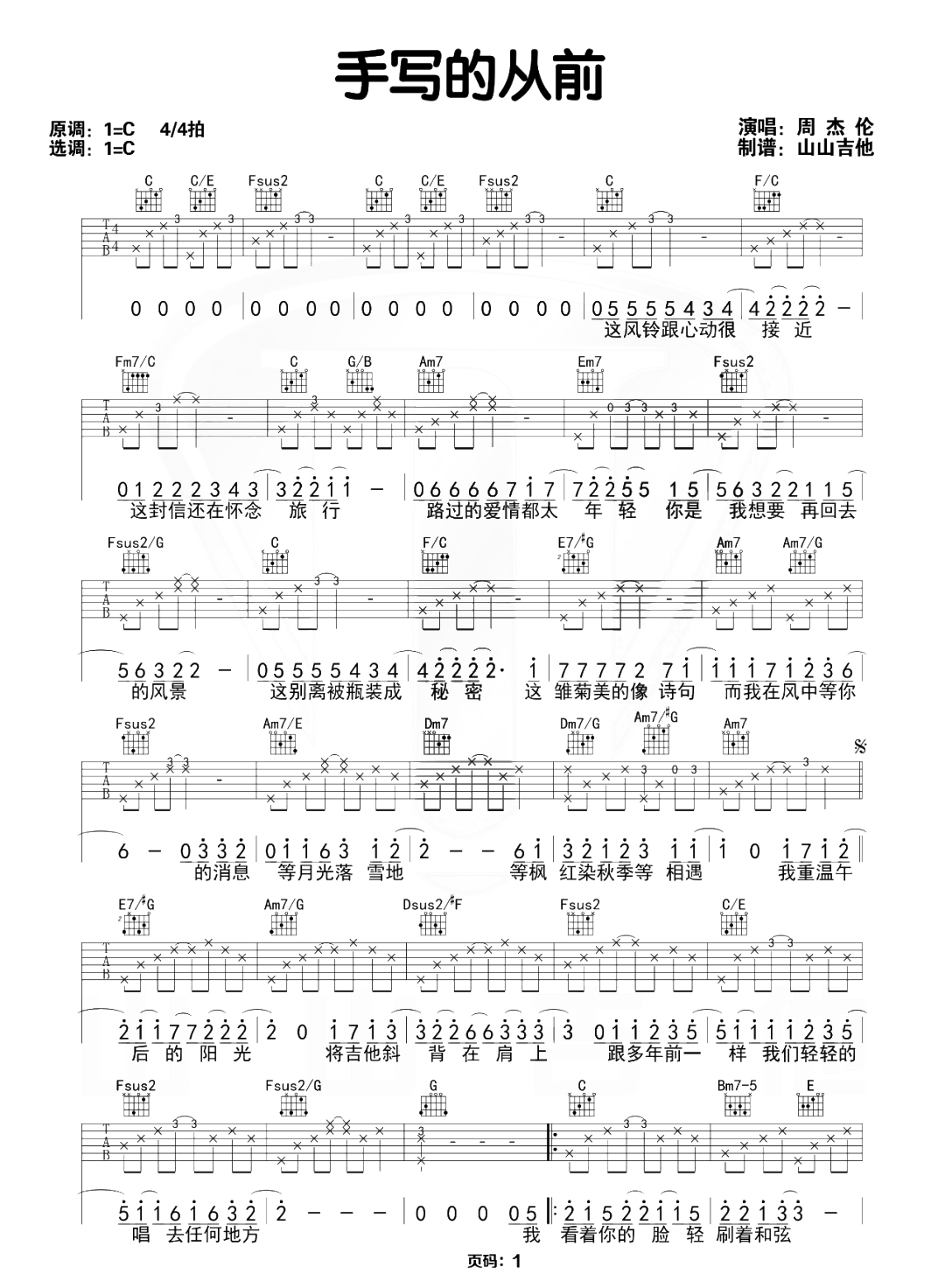 本文标题 《周杰伦《手写的从前吉他谱》(C调)》,网址:https://www.21qupu.com/guitar/24558.html