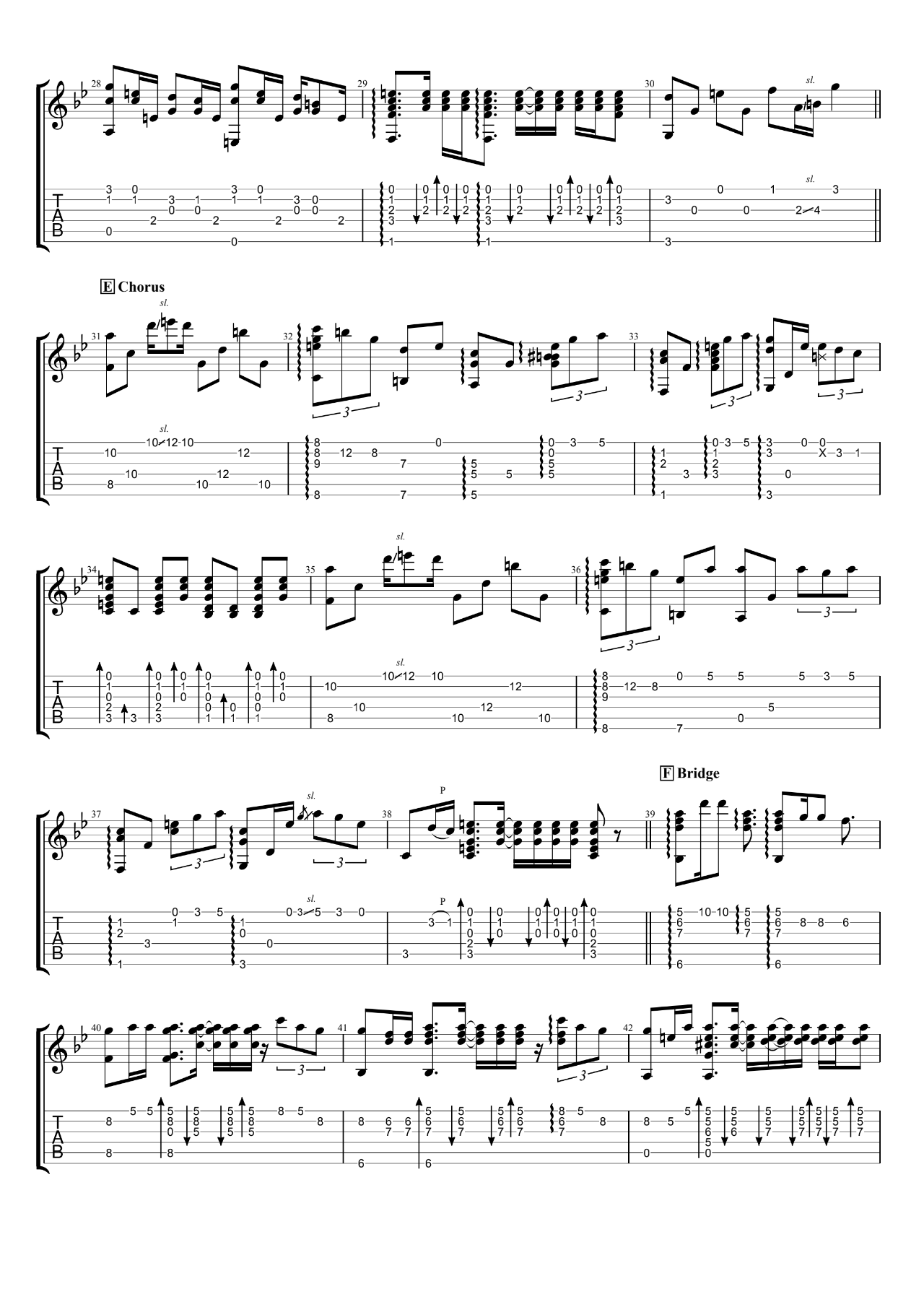 这首歌曲是郑成河改编自曲婉婷的歌曲《我的歌声里》,以指弹吉他演奏。郑成河的版本极具层次感和充实度,共包含5张高清图片谱例,演奏速度为80BPM,拍子为4/4,难度为5级。这个吉他谱提供了精简的演奏指导,适合吉他技巧较为熟练的演奏者尝试。