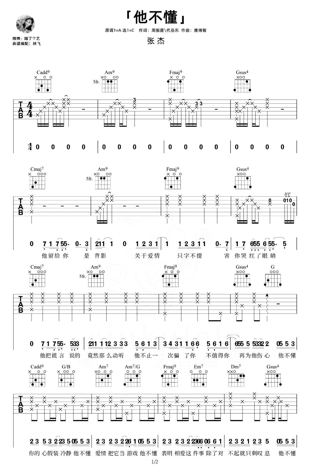 《张杰《他不懂吉他谱》(C调)》内容来自于互联网,不能保证内容的准确性与完整性,仅供学习交流欣赏,请勿用于其它用途,内容版权归原作者及来源网站所有,如有侵犯到您的权益请来信告知,我们将及时删除。