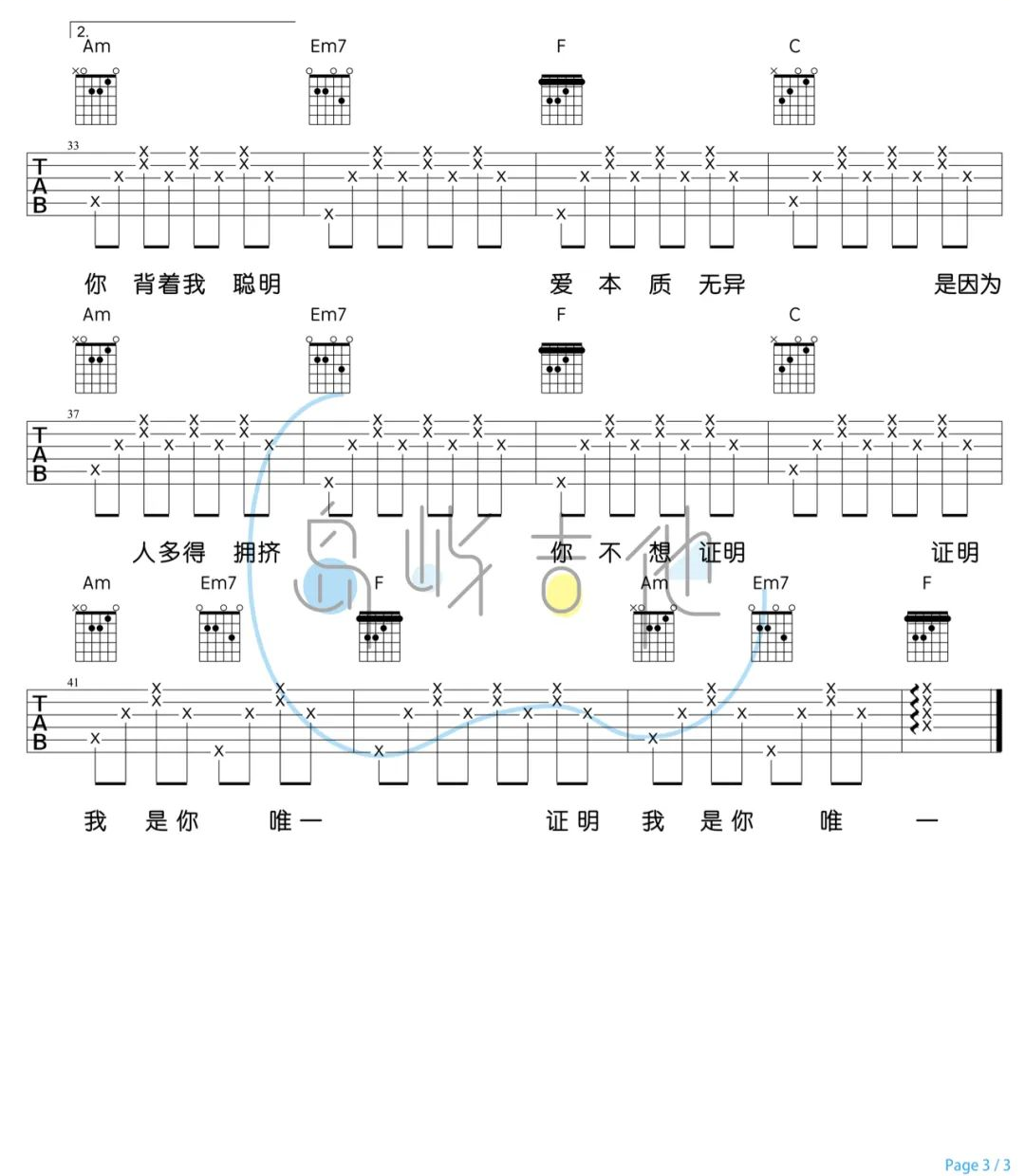 《告五人《唯一吉他谱》(C调)》内容来自于互联网,不能保证内容的准确性与完整性,仅供学习交流欣赏,请勿用于其它用途,内容版权归原作者及来源网站所有,如有侵犯到您的权益请来信告知,我们将及时删除。