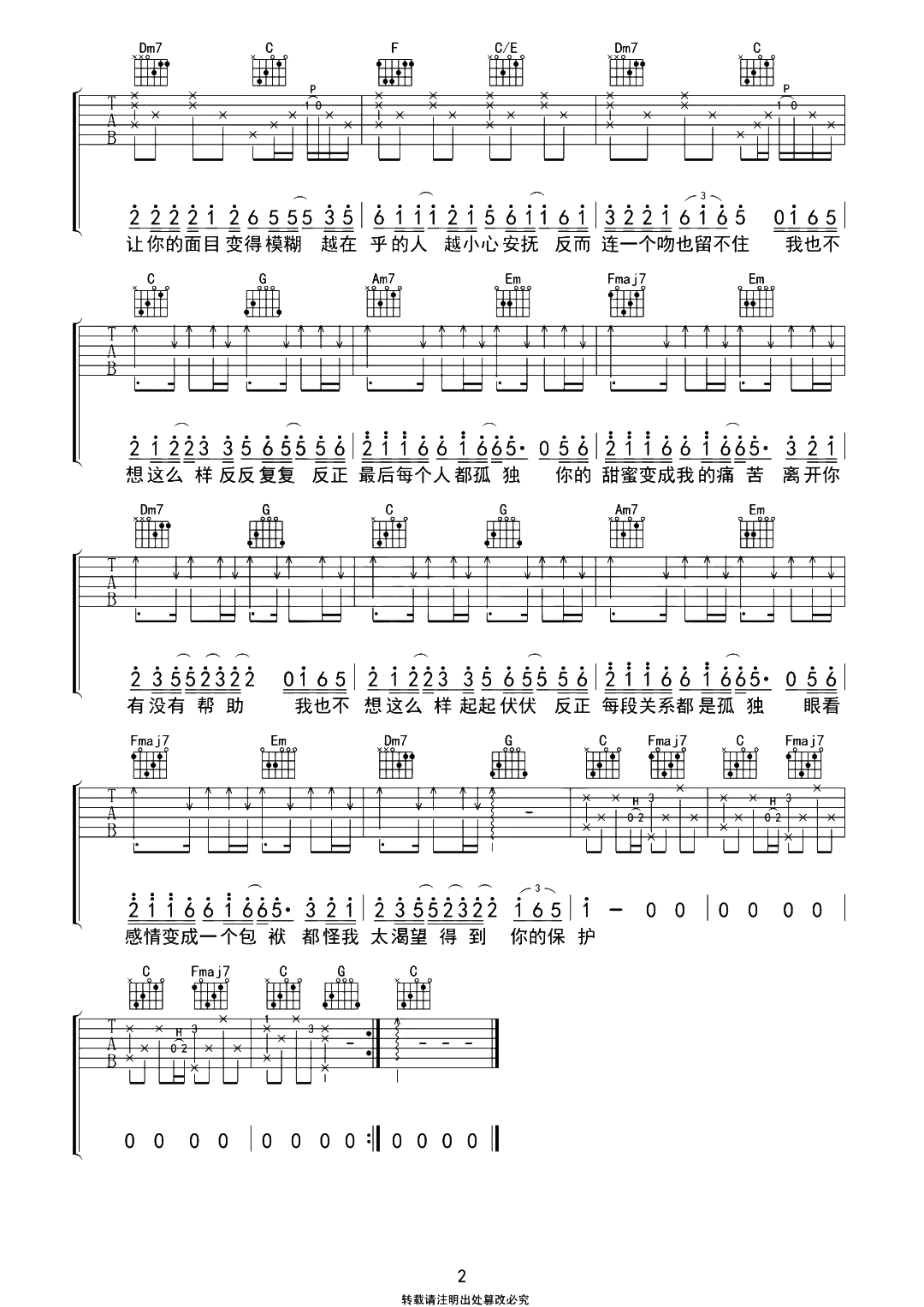 《徐佳莹《我也不想这样吉他谱》(C调)》内容来自于互联网,不能保证内容的准确性与完整性,仅供学习交流欣赏,请勿用于其它用途,内容版权归原作者及来源网站所有,如有侵犯到您的权益请来信告知,我们将及时删除。