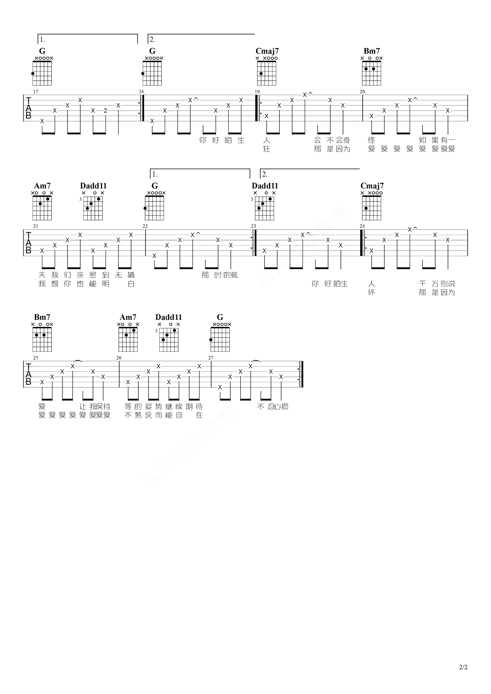 《任然《你好陌生人吉他谱》(G调)》内容来自于互联网,不能保证内容的准确性与完整性,仅供学习交流欣赏,请勿用于其它用途,内容版权归原作者及来源网站所有,如有侵犯到您的权益请来信告知,我们将及时删除。