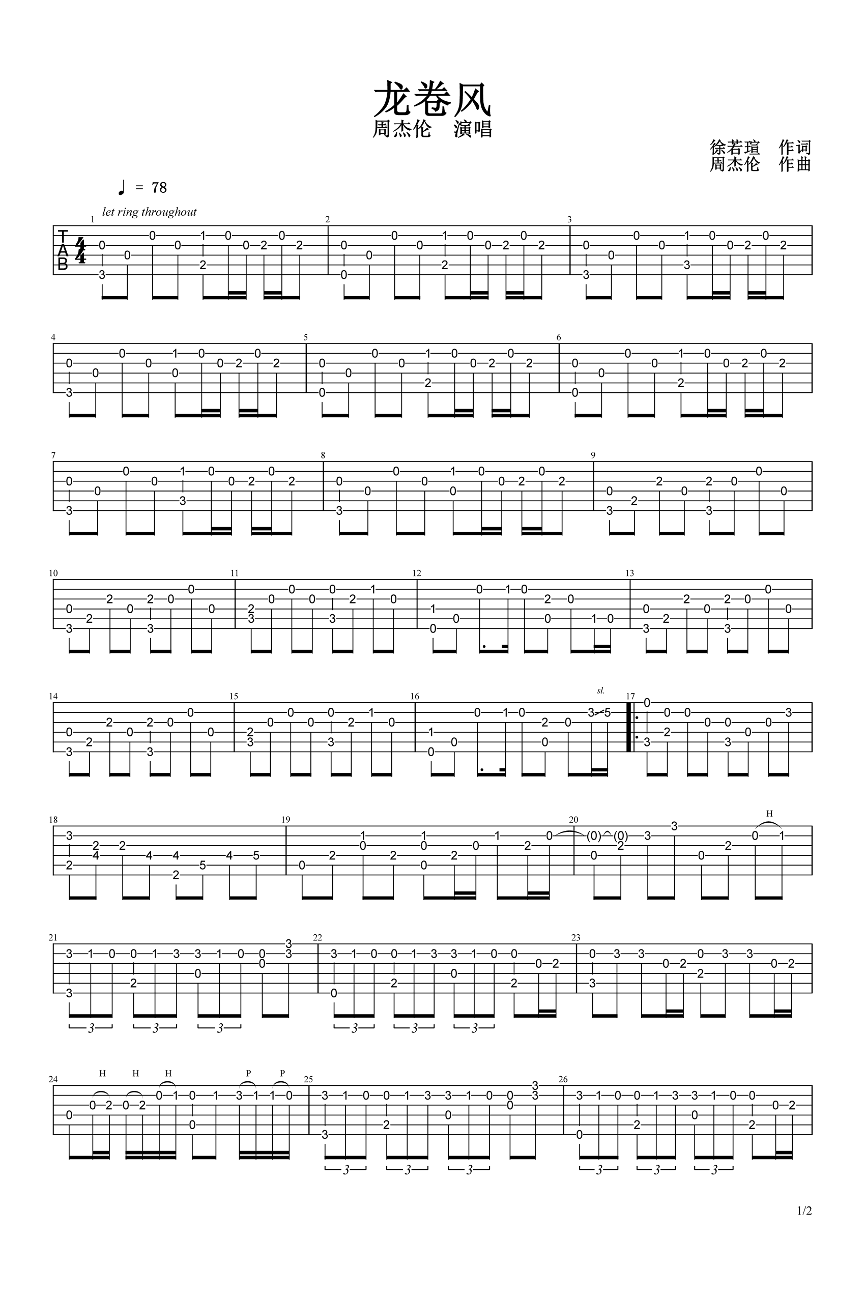 《周杰伦《龙卷风吉他谱》》内容来自于互联网,不能保证内容的准确性与完整性,仅供学习交流欣赏,请勿用于其它用途,内容版权归原作者及来源网站所有,如有侵犯到您的权益请来信告知,我们将及时删除。