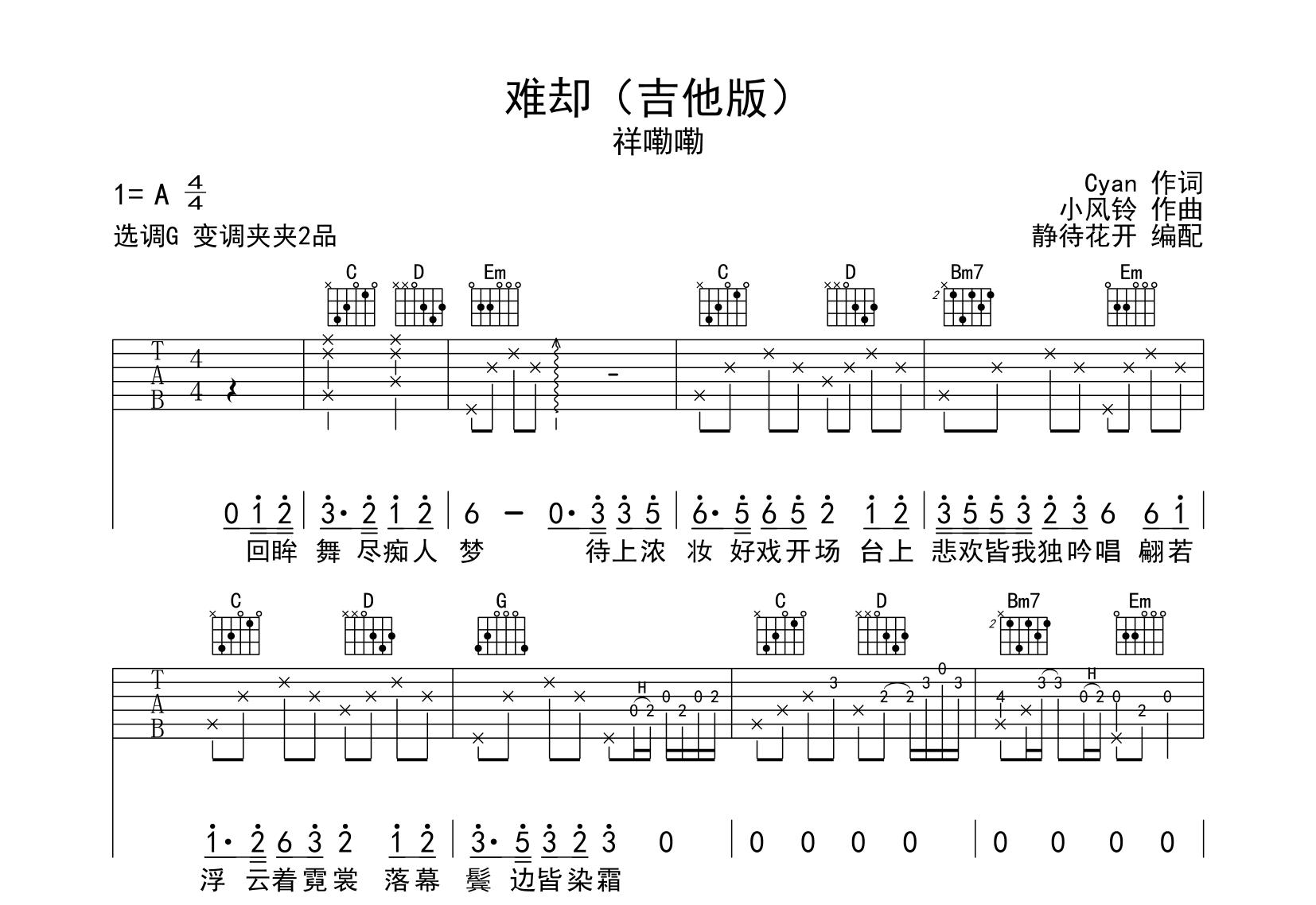 《祥嘞嘞《难却吉他谱》(G调)》内容来自于互联网,不能保证内容的准确性与完整性,仅供学习交流欣赏,请勿用于其它用途,内容版权归原作者及来源网站所有,如有侵犯到您的权益请来信告知,我们将及时删除。