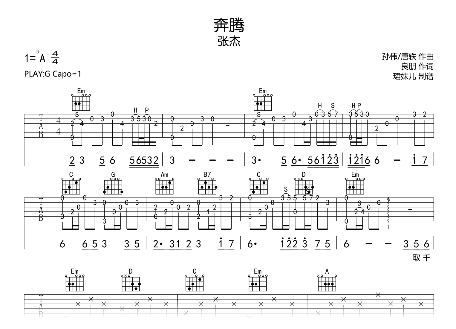 《张杰《奔腾吉他谱》(G调)》内容来自于互联网,不能保证内容的准确性与完整性,仅供学习交流欣赏,请勿用于其它用途,内容版权归原作者及来源网站所有,如有侵犯到您的权益请来信告知,我们将及时删除。