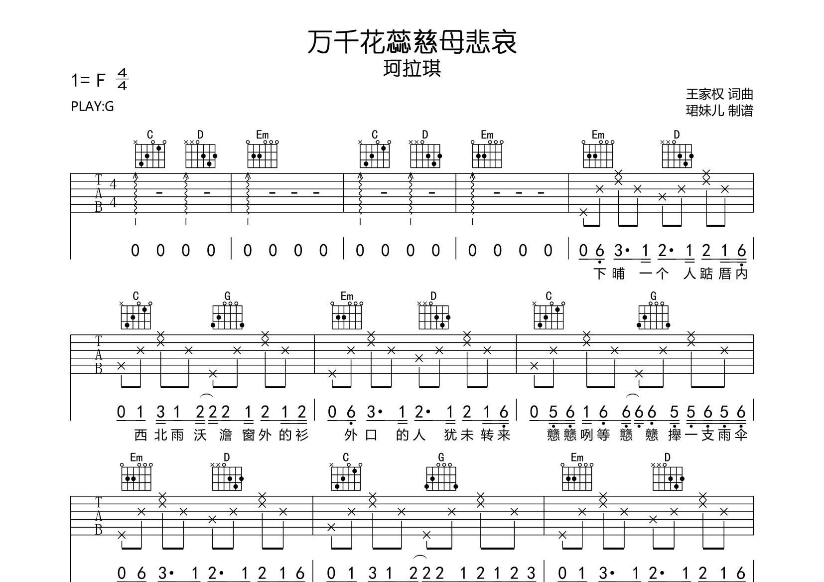 《阿拉琪《万千花蕊慈母悲哀吉他谱》(G调)》内容来自于互联网,不能保证内容的准确性与完整性,仅供学习交流欣赏,请勿用于其它用途,内容版权归原作者及来源网站所有,如有侵犯到您的权益请来信告知,我们将及时删除。