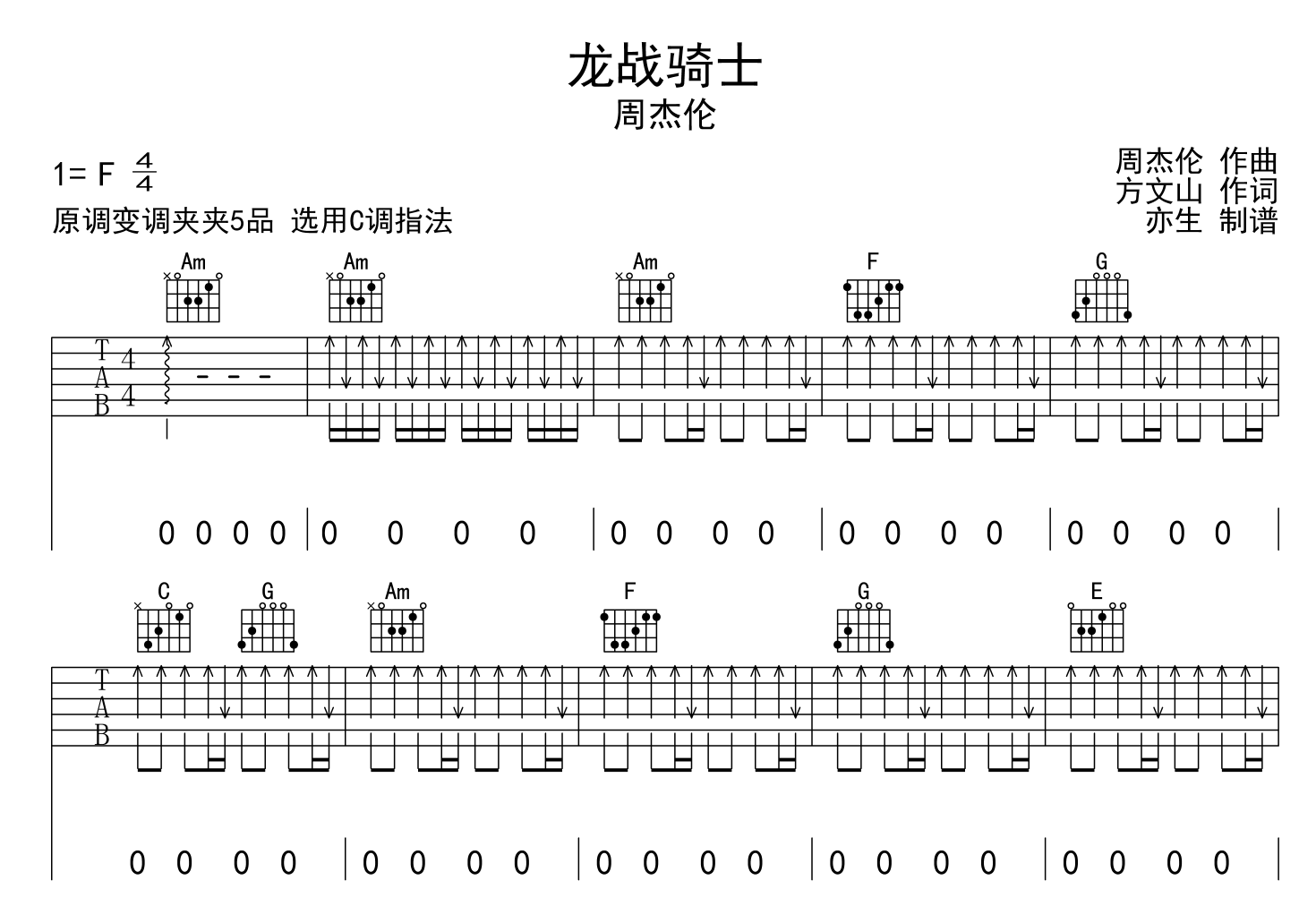 《周杰伦《龙战骑士吉他谱》(C调)》内容来自于互联网,不能保证内容的准确性与完整性,仅供学习交流欣赏,请勿用于其它用途,内容版权归原作者及来源网站所有,如有侵犯到您的权益请来信告知,我们将及时删除。