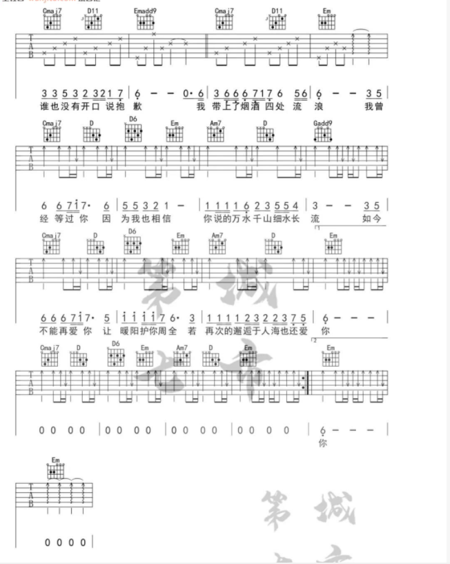 《阿木《你的万水千山吉他谱》(G调)》内容来自于互联网,不能保证内容的准确性与完整性,仅供学习交流欣赏,请勿用于其它用途,内容版权归原作者及来源网站所有,如有侵犯到您的权益请来信告知,我们将及时删除。