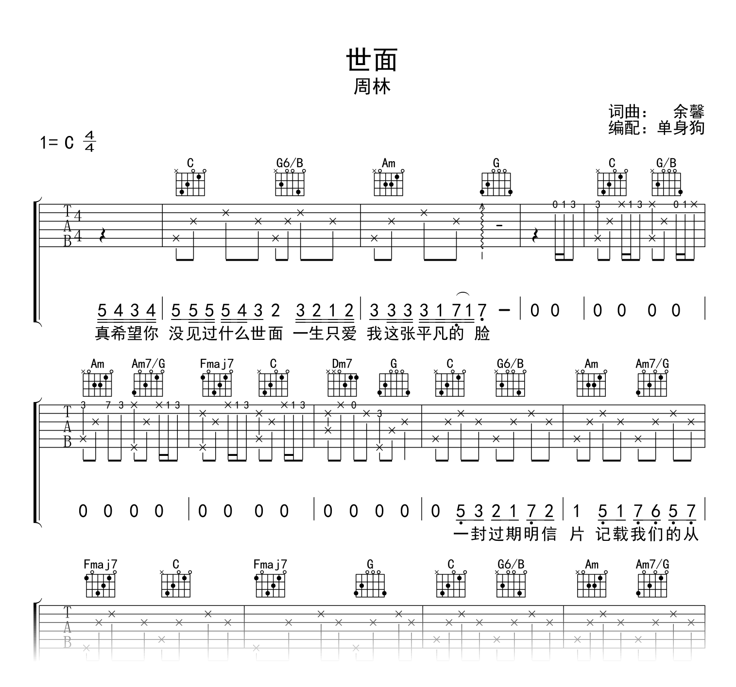 《周林《世面吉他谱》(C调)》内容来自于互联网,不能保证内容的准确性与完整性,仅供学习交流欣赏,请勿用于其它用途,内容版权归原作者及来源网站所有,如有侵犯到您的权益请来信告知,我们将及时删除。