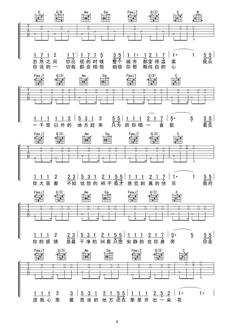 《花粥《小相思吉他谱》(C调)》内容来自于互联网,不能保证内容的准确性与完整性,仅供学习交流欣赏,请勿用于其它用途,内容版权归原作者及来源网站所有,如有侵犯到您的权益请来信告知,我们将及时删除。