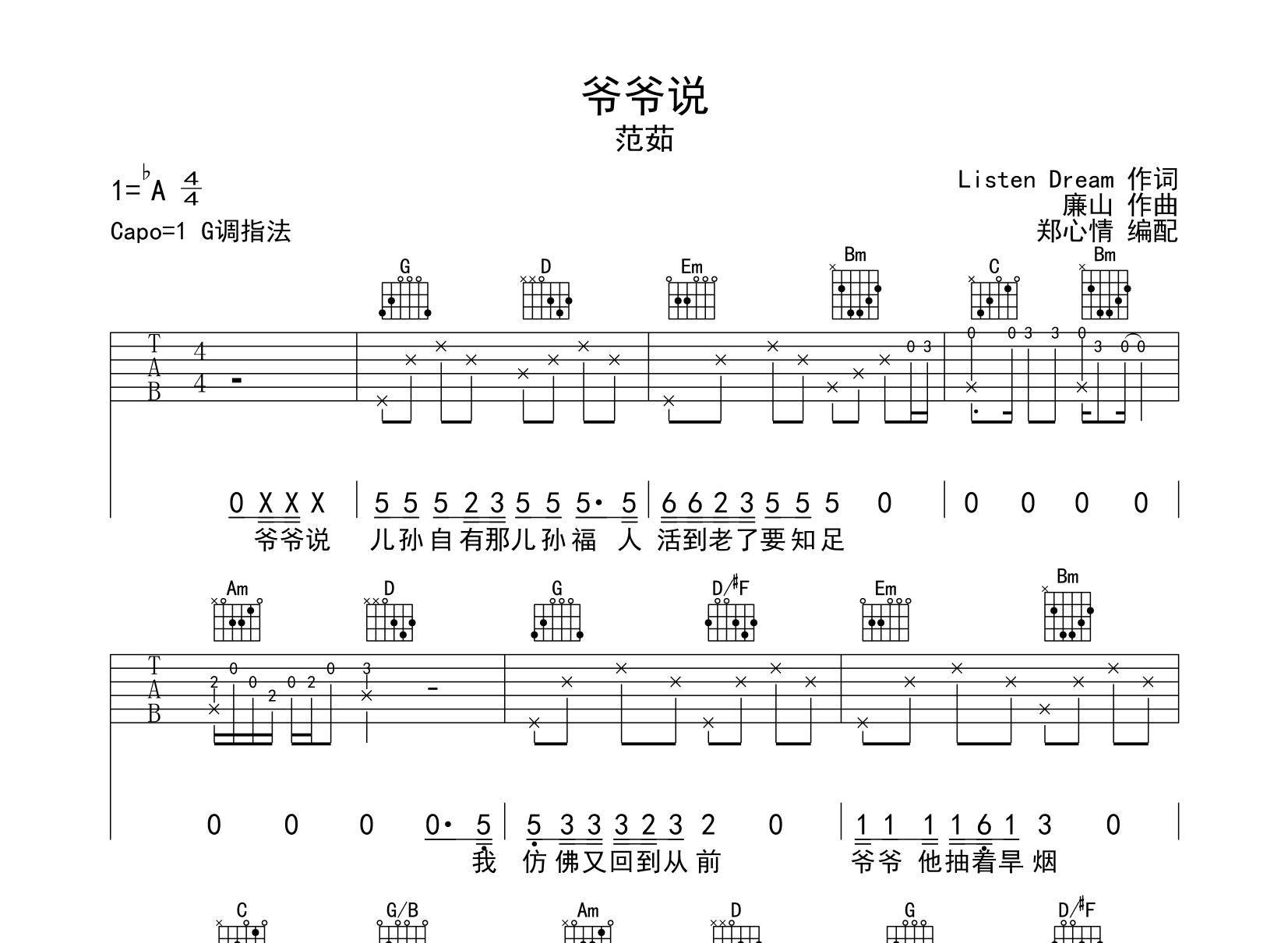 《范茹《爷爷说吉他谱》(G调)》内容来自于互联网,不能保证内容的准确性与完整性,仅供学习交流欣赏,请勿用于其它用途,内容版权归原作者及来源网站所有,如有侵犯到您的权益请来信告知,我们将及时删除。