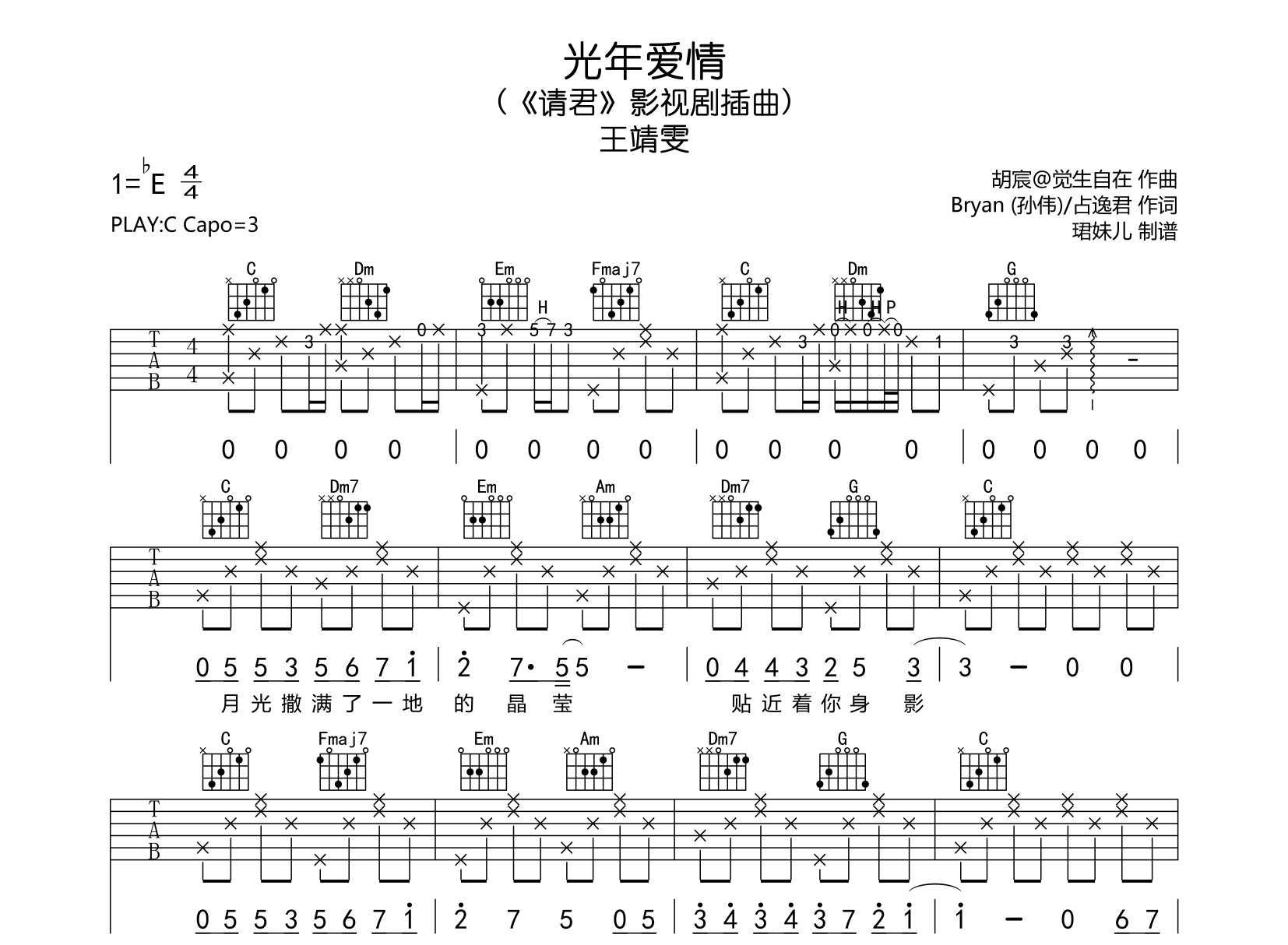 《王靖雯《光年爱情吉他谱》(C调)》内容来自于互联网,不能保证内容的准确性与完整性,仅供学习交流欣赏,请勿用于其它用途,内容版权归原作者及来源网站所有,如有侵犯到您的权益请来信告知,我们将及时删除。