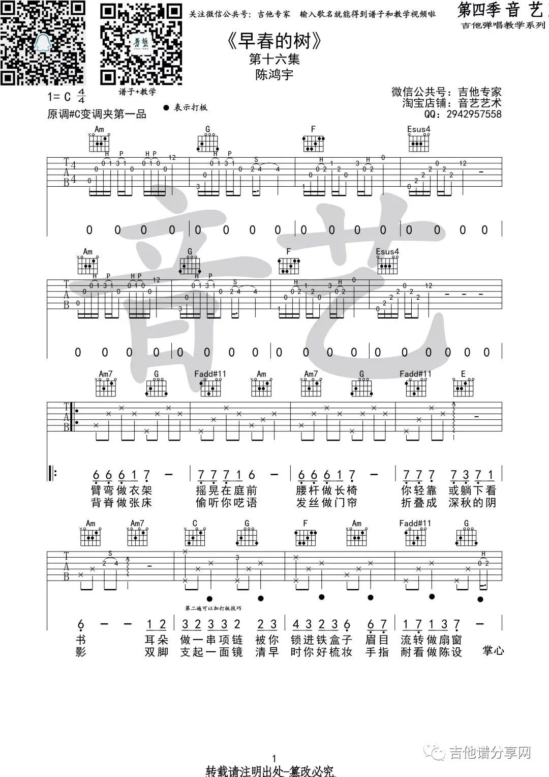 《陈鸿宇《早春的树吉他谱》(C调)》内容来自于互联网,不能保证内容的准确性与完整性,仅供学习交流欣赏,请勿用于其它用途,内容版权归原作者及来源网站所有,如有侵犯到您的权益请来信告知,我们将及时删除。