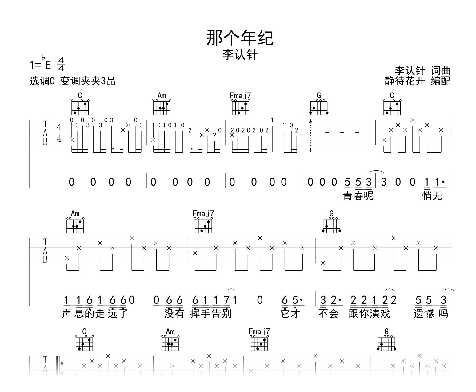 《李认针《那个年纪吉他谱》(C调)》内容来自于互联网,不能保证内容的准确性与完整性,仅供学习交流欣赏,请勿用于其它用途,内容版权归原作者及来源网站所有,如有侵犯到您的权益请来信告知,我们将及时删除。