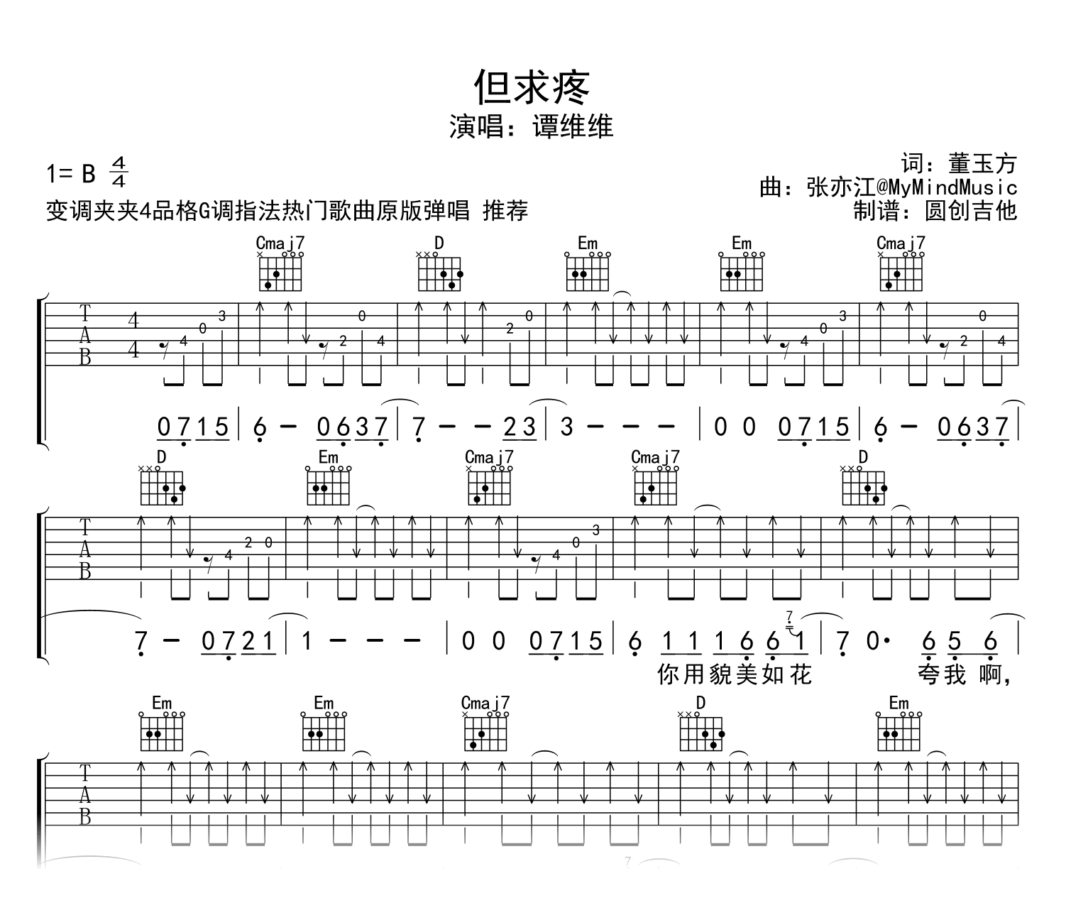 《谭维维《但求疼吉他谱》(G调)》内容来自于互联网,不能保证内容的准确性与完整性,仅供学习交流欣赏,请勿用于其它用途,内容版权归原作者及来源网站所有,如有侵犯到您的权益请来信告知,我们将及时删除。