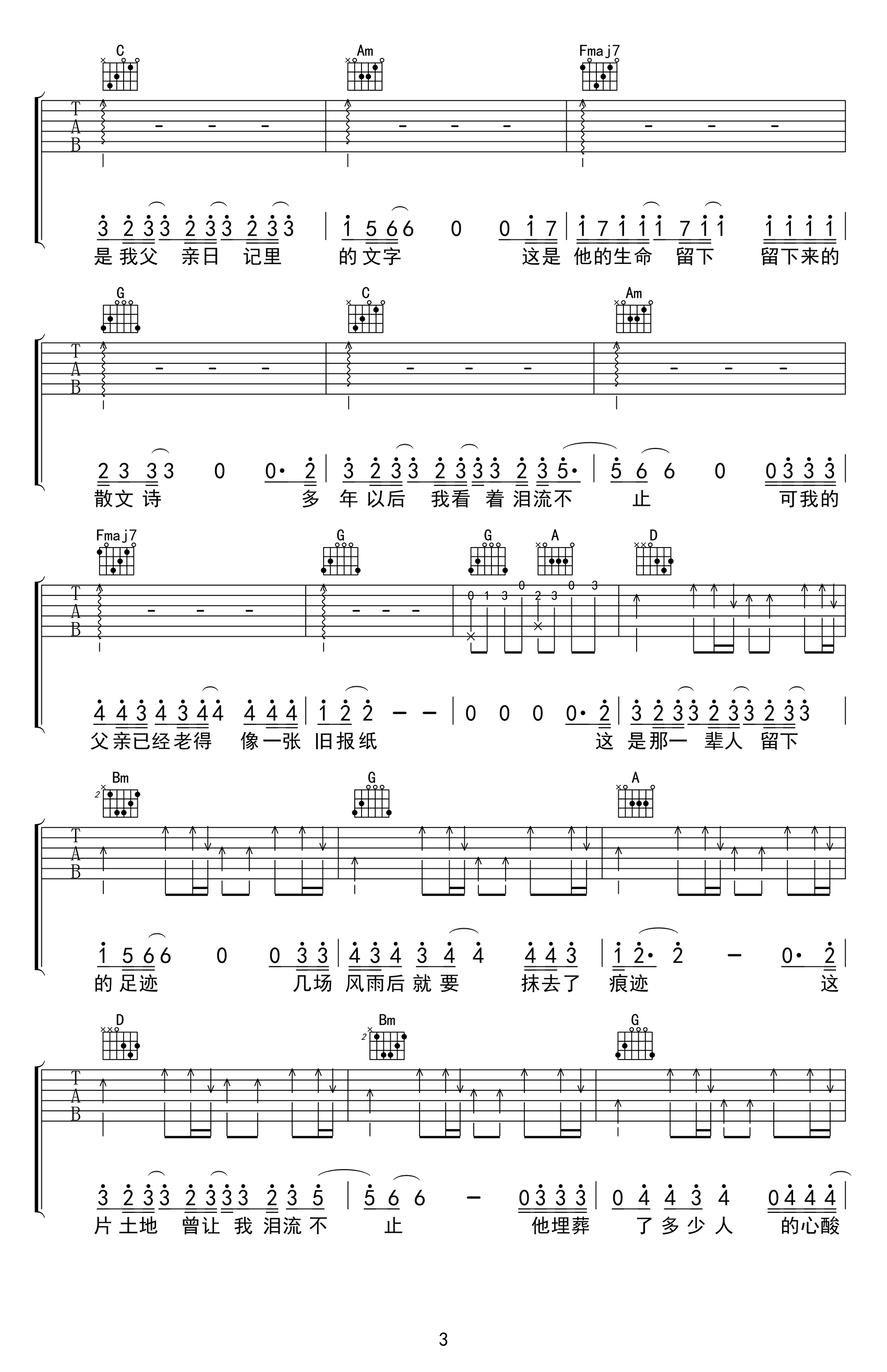 《李健《父亲写的散文诗吉他谱》(C调)》内容来自于互联网,不能保证内容的准确性与完整性,仅供学习交流欣赏,请勿用于其它用途,内容版权归原作者及来源网站所有,如有侵犯到您的权益请来信告知,我们将及时删除。