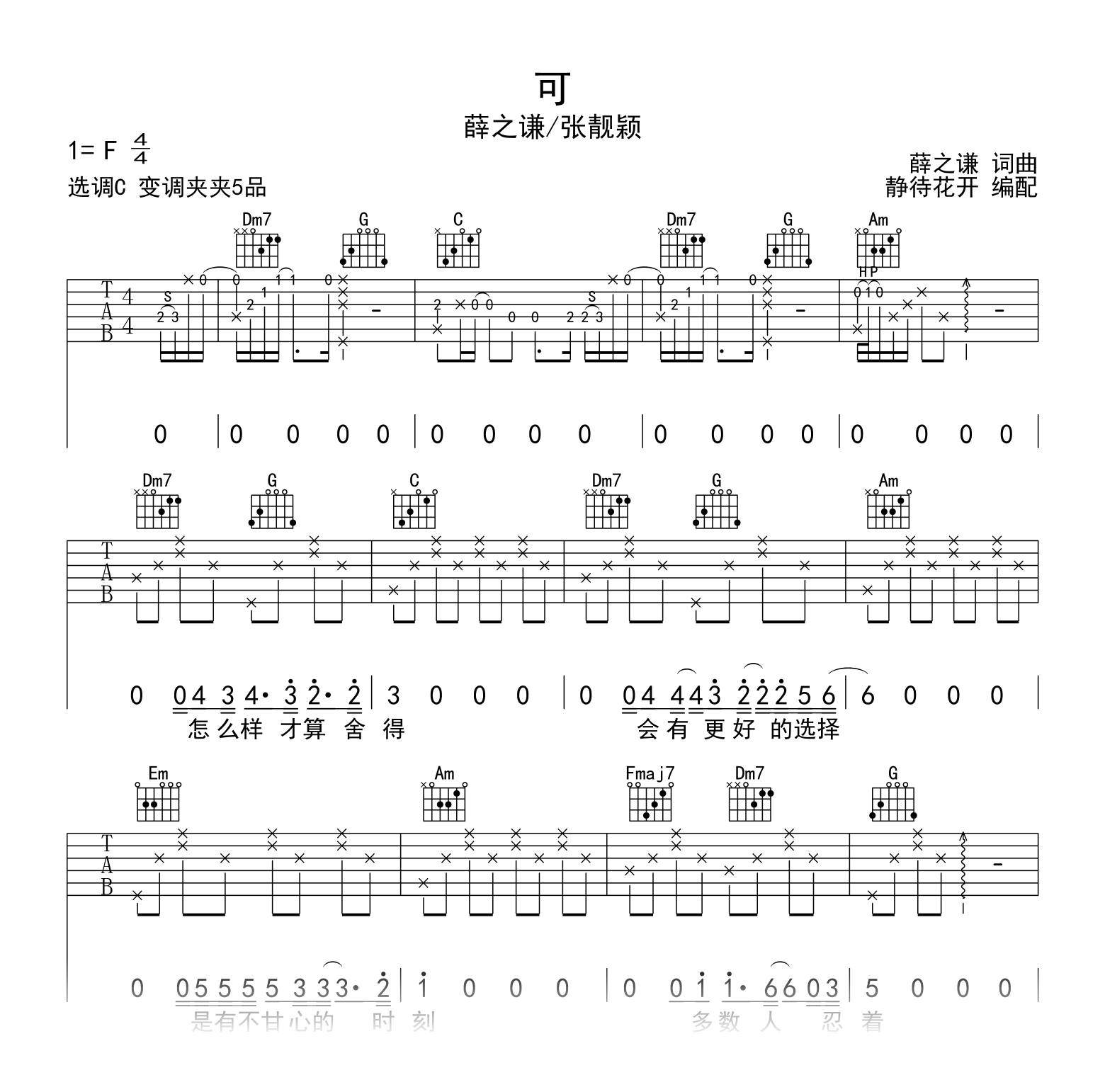 《薛之谦《可吉他谱》(C调)》内容来自于互联网,不能保证内容的准确性与完整性,仅供学习交流欣赏,请勿用于其它用途,内容版权归原作者及来源网站所有,如有侵犯到您的权益请来信告知,我们将及时删除。