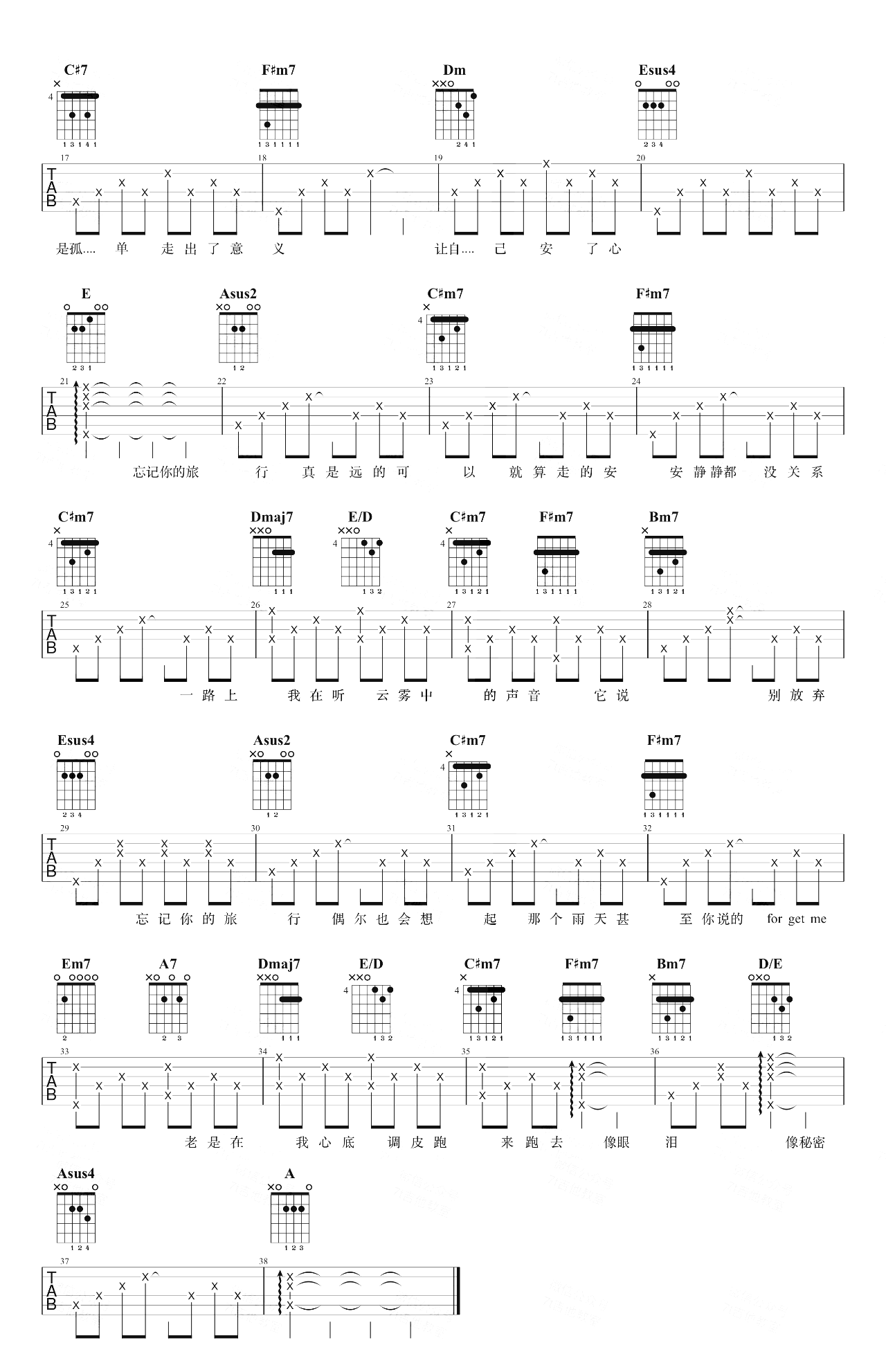 《袁娅维《旅行中忘记吉他谱》(A调)》内容来自于互联网,不能保证内容的准确性与完整性,仅供学习交流欣赏,请勿用于其它用途,内容版权归原作者及来源网站所有,如有侵犯到您的权益请来信告知,我们将及时删除。