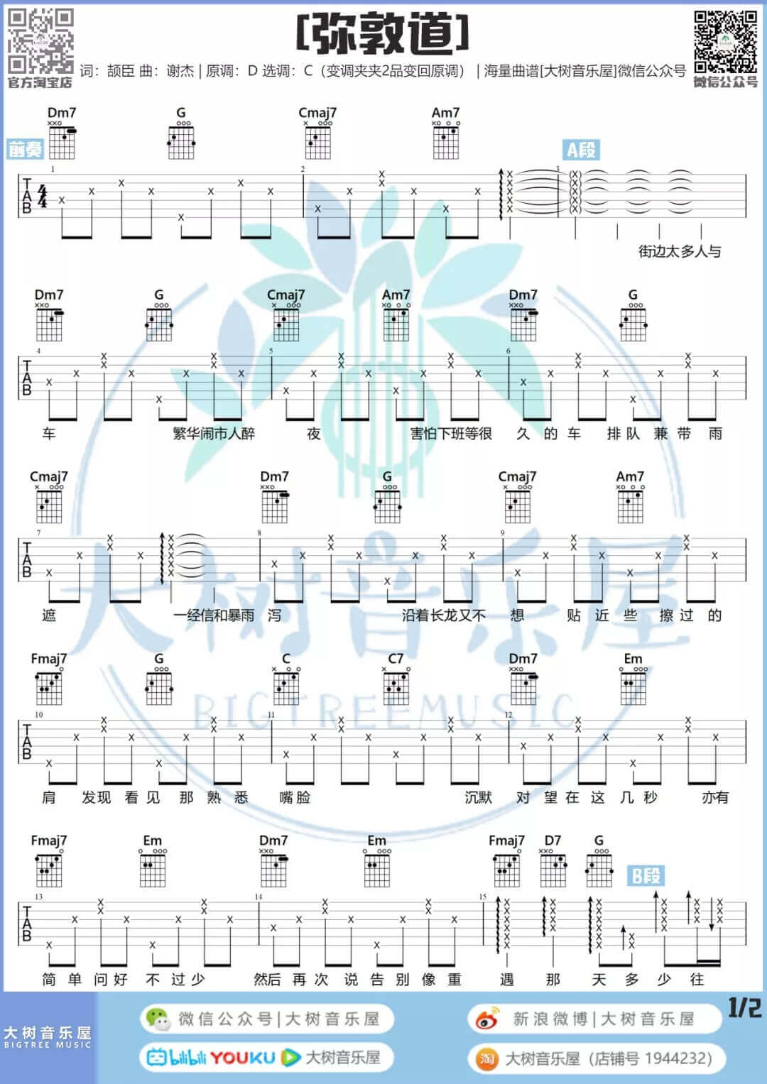 《洪卓立《弥敦道吉他谱》》内容来自于互联网,不能保证内容的准确性与完整性,仅供学习交流欣赏,请勿用于其它用途,内容版权归原作者及来源网站所有,如有侵犯到您的权益请来信告知,我们将及时删除。