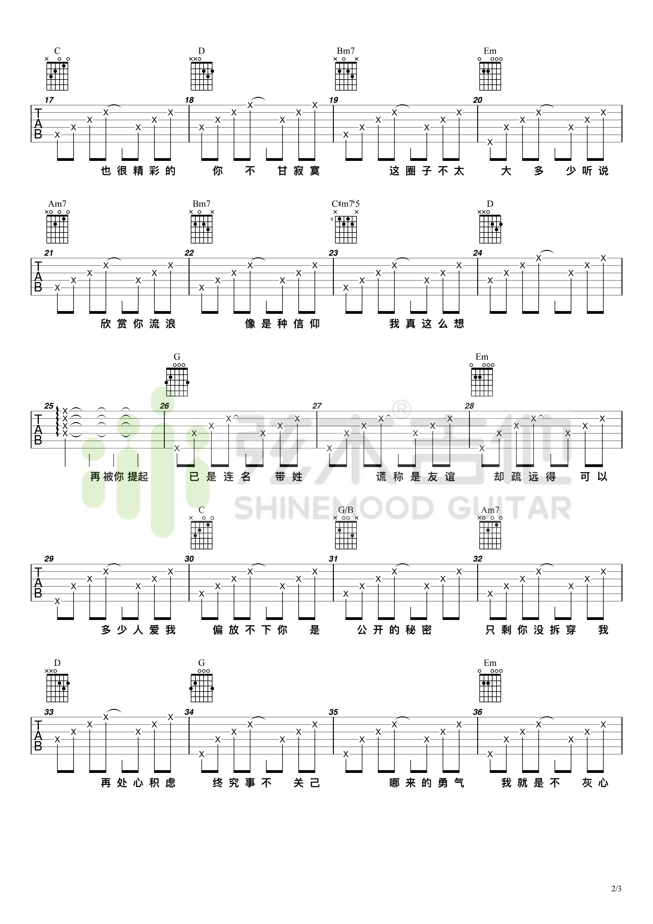 《护花使者》是李克勤的一首粤语怀旧老歌,以轻快的曲调和鲜明的律动为特点。这首歌的吉他谱以原调C调指法编配,提供了完整的高清六线谱例,包含四张图片谱。节奏强烈、动感十足,是一首劲歌金曲,让人仿佛被带入狂欢的氛围中。在旋律的引领下,仿佛回到那些年,多少人曾为此沉醉