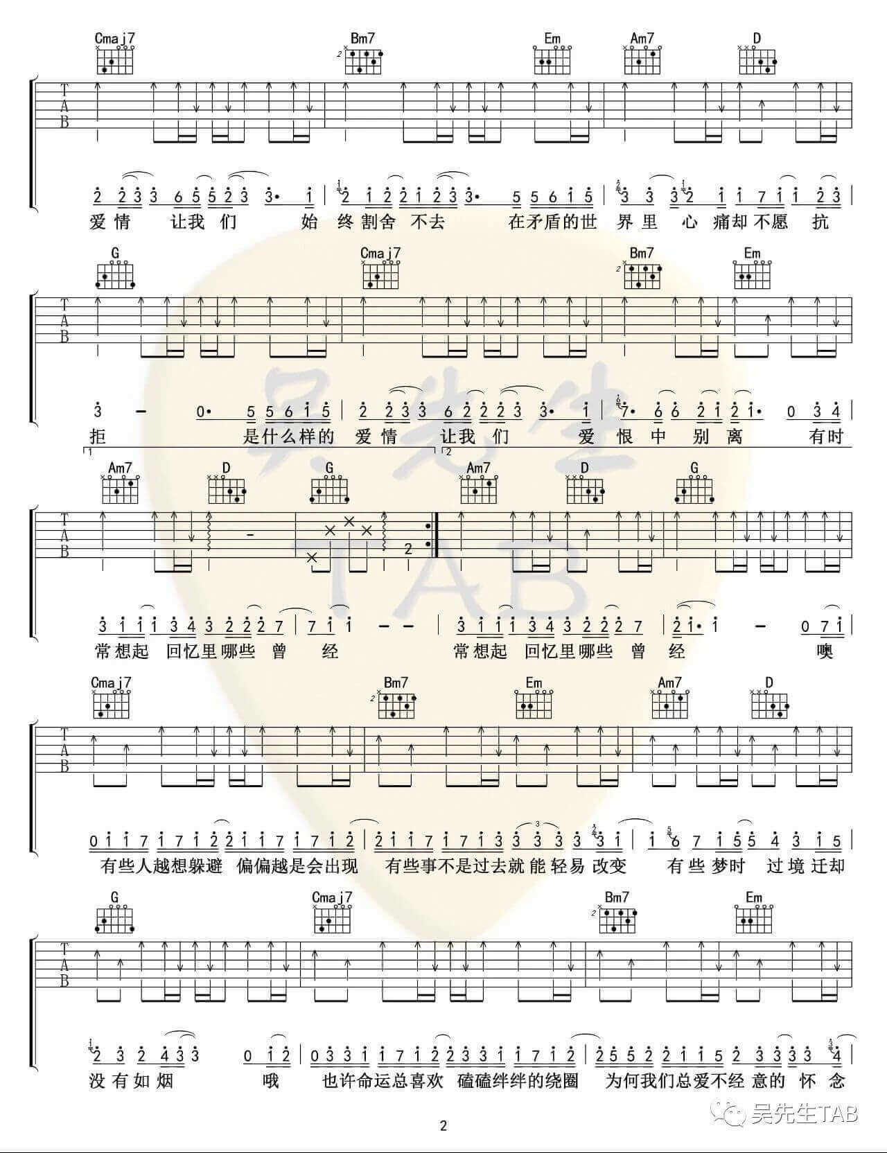 电视剧《因为遇见你》的插曲《什么样的爱情》由张阳阳演唱,吴先生编配了该曲的吉他谱,采用G调指法六线谱。弹唱时,男生可使用变调夹夹第三品,而女生则建议使用变调夹夹第二品。这首歌曲情感细腻,旋律悠扬,张阳阳的嗓音充满温暖,将爱情的复杂情感娓娓道来。吴先生的谱曲技巧