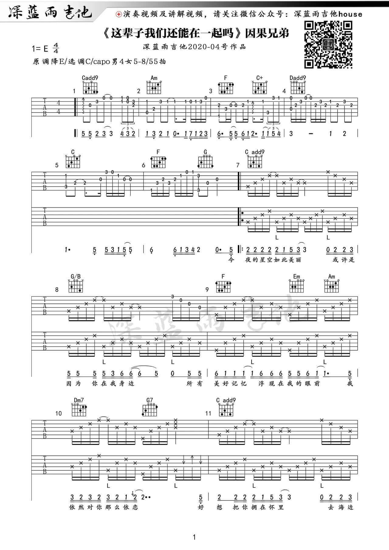 深蓝雨吉他编配的《这辈子我们还能在一起吗》吉他谱以C调为基调,男生可使用变调夹夹在第四品演奏,而女生则适合在5-8品夹奏。这首歌曲不仅提供了谱面,还附有弹唱示范演示视频,为学习者提供了更直观的教学资源。通过吉他演示和视频教学,学习者能够更好地理解和掌握曲目的演