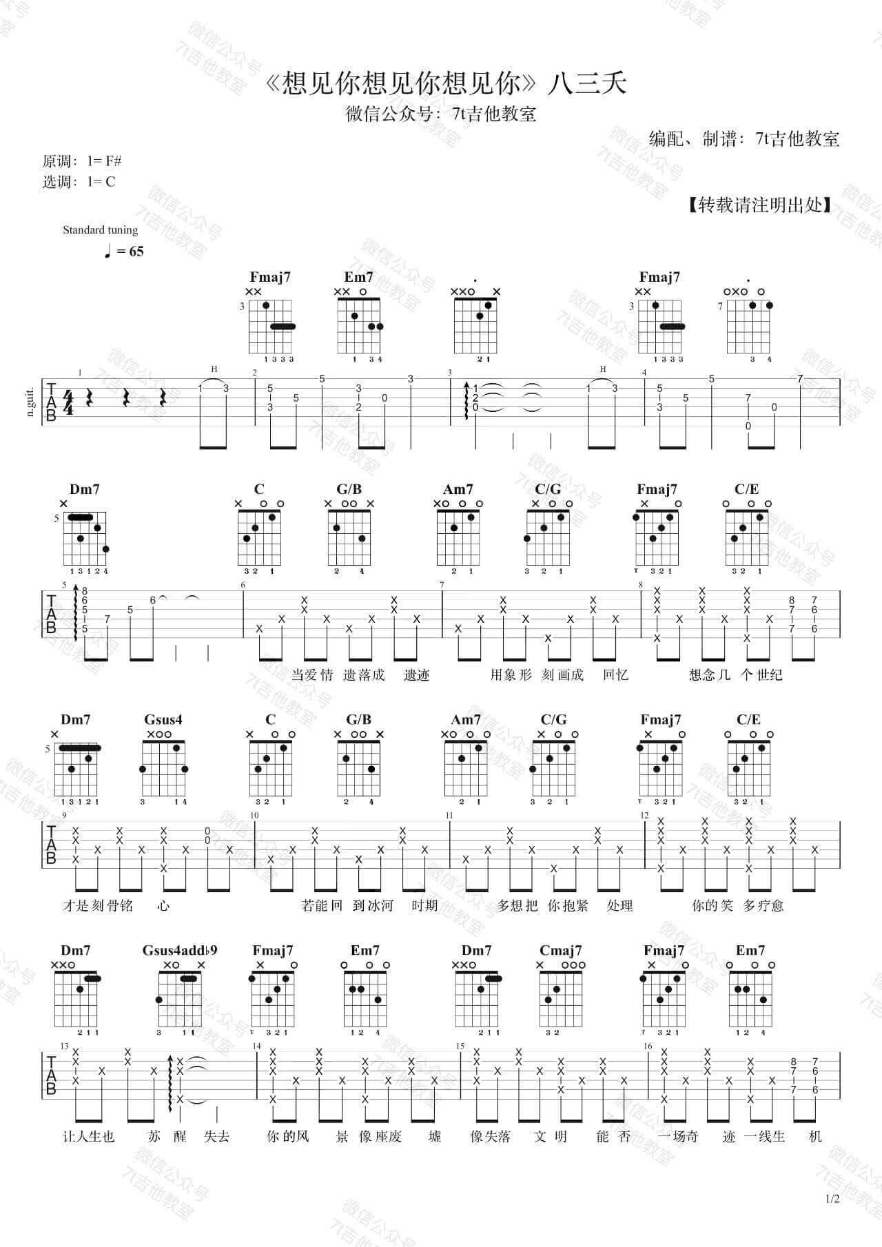《八三夭《想见你想见你想见你吉他谱》》内容来自于互联网,不能保证内容的准确性与完整性,仅供学习交流欣赏,请勿用于其它用途,内容版权归原作者及来源网站所有,如有侵犯到您的权益请来信告知,我们将及时删除。