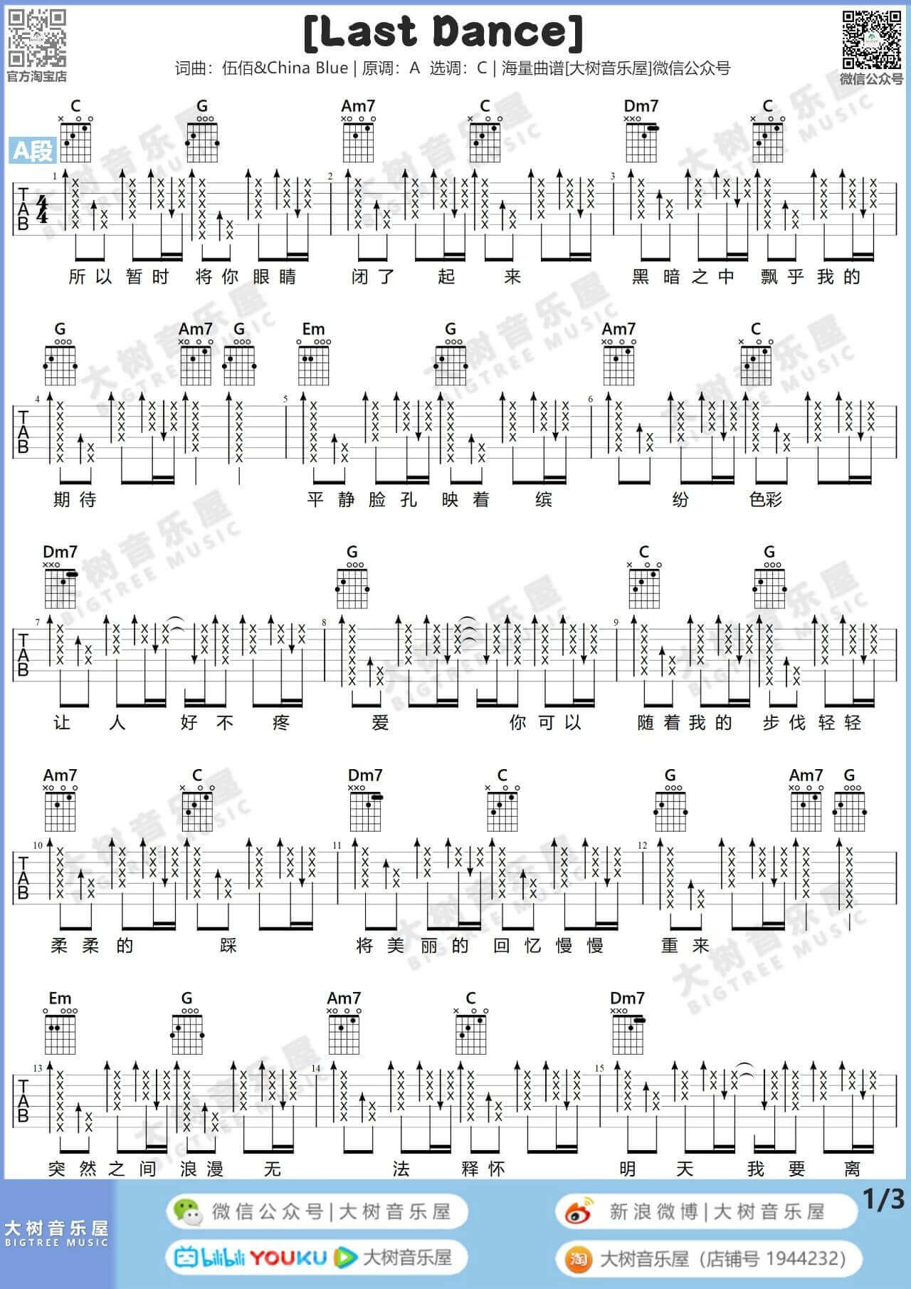 近期,热播的台剧《想见你》掀起了对伍佰多年前老歌《Last Dance》的热潮。大树音乐为歌曲编制了吉他谱,包含C调版和弦谱以及六线谱两种格式,并提供了吉他弹唱示范和演示教学。这个包含了吉他弹唱演示和视频教学的谱子,使得学习变得更加生动。欣赏《Last Dan