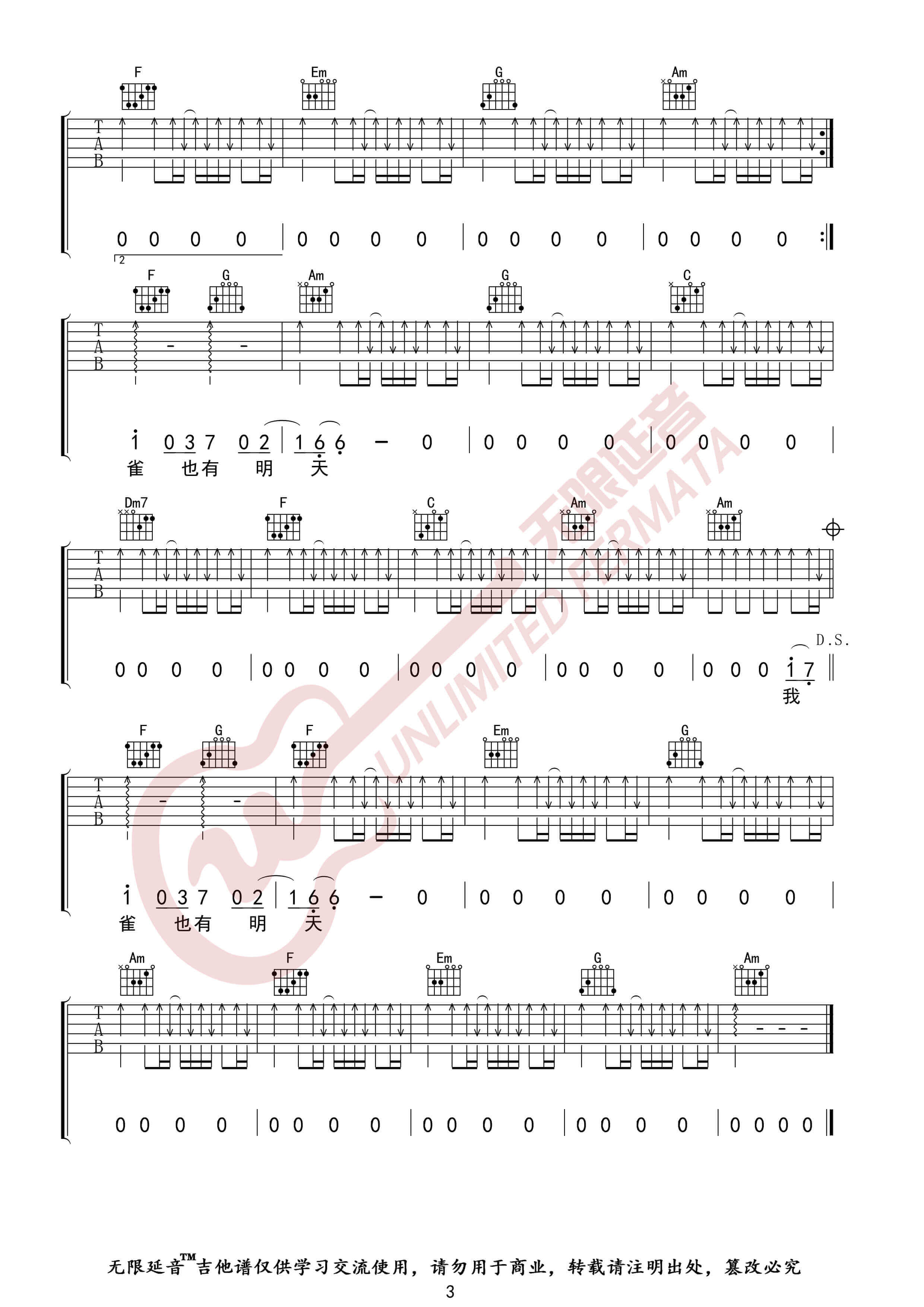 《李荣浩《麻雀吉他谱》(C调)》内容来自于互联网,不能保证内容的准确性与完整性,仅供学习交流欣赏,请勿用于其它用途,内容版权归原作者及来源网站所有,如有侵犯到您的权益请来信告知,我们将及时删除。